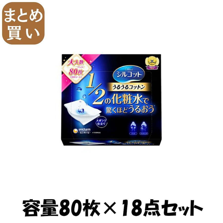 〇商品仕様シルコットうるうるコットン80枚×18点セット単品サイズ475×250×280(mm) 容量80マイ(出典:ユニ・チャーム株式会社)
