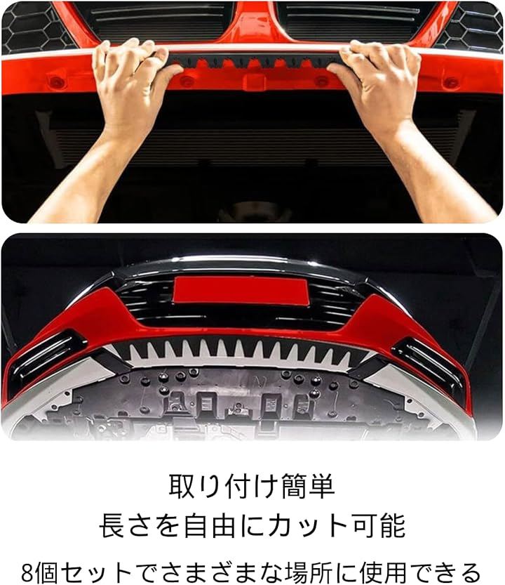 貼りたい部分の油や汚れを落とし、バンパー下のサイズに合わせてカットし、付属の両面テープで貼り付けるだけです。