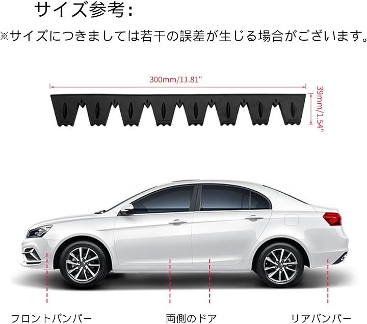 愛車のバンパーを傷から守る、柔軟で耐久性に優れたゴム製プロテクターです。