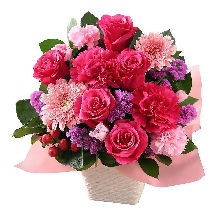 【使用花材】バラ・旬を迎える花・グリーン 【使用資材】バスケット、ペーパー 【同梱物】メッセージカード・お花のお手入れ方法の栞 【サイズ】幅約25cm×奥行き約15cm×高さ約27cm ※生花ですので、その咲き具合などにより画像と多少色目等が異なる場合がございます。予めご了承くださいませ。 ※「北海道、青森、秋田、岩手」へのお届けに関して、冬季は凍結の恐れがあるため生花に限りクール便にてお届けいたします。※クール便は外気にさらされないため、凍結を防ぎ、よい状態で商品をお届けすることができます。