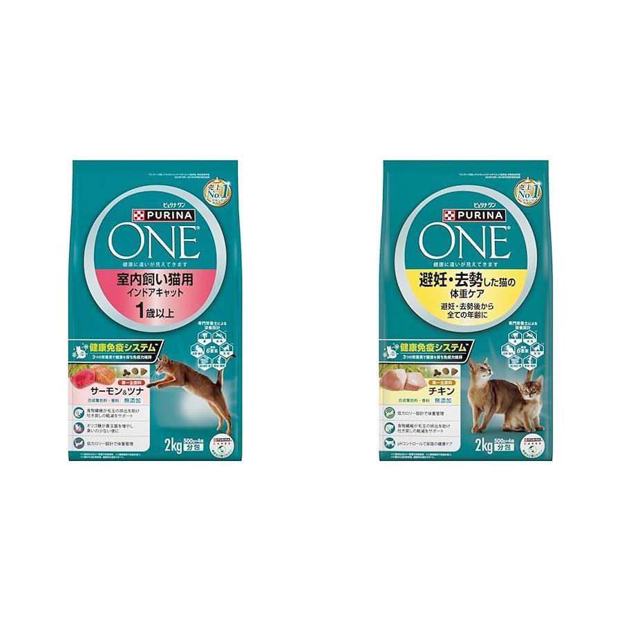 ピュリナ ワン キャットフード ドライ 室内飼い猫用 インドアキャット 1歳以上 サーモン&ツナ 2kg室内飼いの猫の悩みをまとめてケア。3つの栄養素の特別な配合「健康免疫システム」で健康を保ち免疫力を維持。