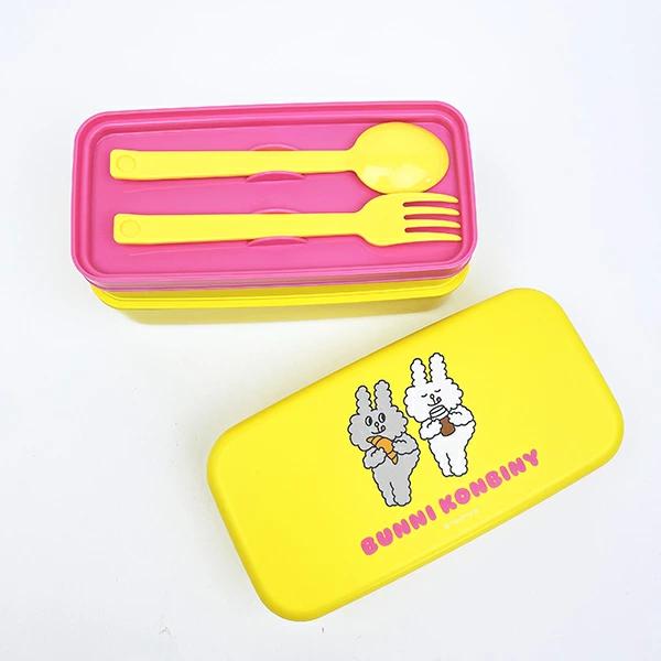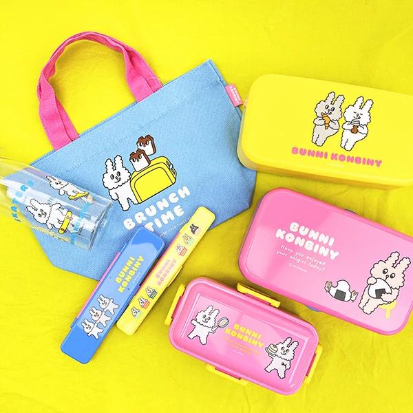 バニータウンにある小さなコンビニエンスストアで働く、マヨくん、モグちゃん、マメちゃんたちの物語。愛嬌たっぷりの3匹に出会えたら、なにかワクワクするようなできごとが起きるかも……! いつだってみんなをハッピーな空気で包み込んでくれる癒しの存在のカトラリー付ランチボックス2段です。びっくりするほど大きいサイズのお弁当箱!運動会やピクニックなどに使える♪食べ盛りのお子様用でもgood!バニーコンビニのランチアイテムなどと揃えれば、ランチタイムも楽しくなっちゃいそうです☆彡【容量:容量:1000ml(上段:440ml、下段:560ml)】【スプーンの長さ:17cm、フォークの長さ:17cm】