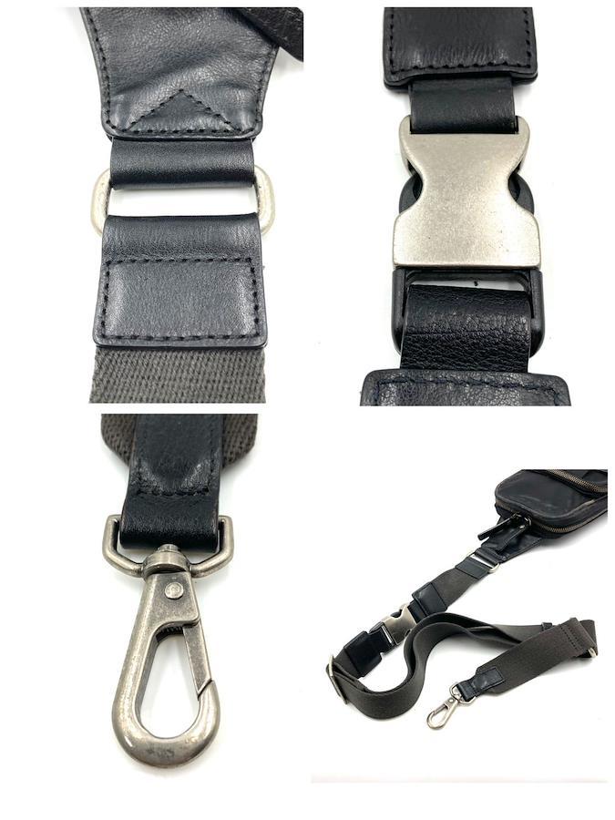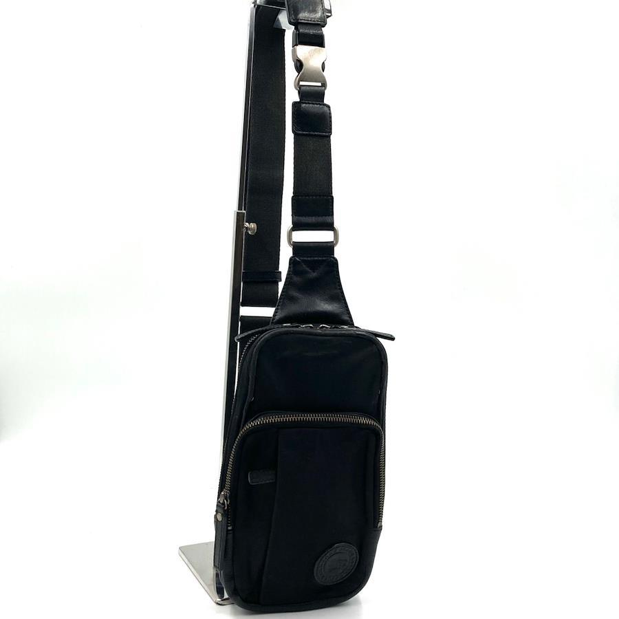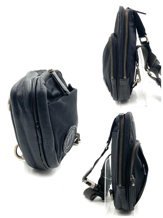 ■商品概要BURBERRY BLACK LABEL バーバリーブラックレーベルボディバッグ 片側肩がけリュックナイロンキャンバス×レザー ブラックホースマークロゴサークルプレートメンズラグジュアリー 高級メンズ