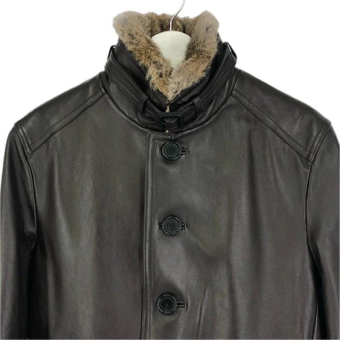 | 商品説明 | 【素材】羊革 バックル部分:牛革 ファー部分:毛皮(ラビット) 中わた:ポリエステル100% 裏地:胴キュプラ 袖ポリエステル 【季節】秋冬 【商品補足説明】※サイズは平置採寸です。 |