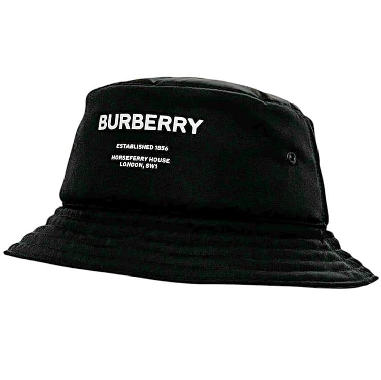 ☆---- 商品について ----☆バーバリー バケットハット ec-24592 ブラック ホースフェリー QC-075308 Mサイズ 美品 クリーニング済み ナイロン 中古 BURBERRY ロゴ 黒 プリント バケハ アパレル 帽子 メンズ レディース 男女兼用 シンプル 57cm 軽量 ブランド 本物 鑑定済み