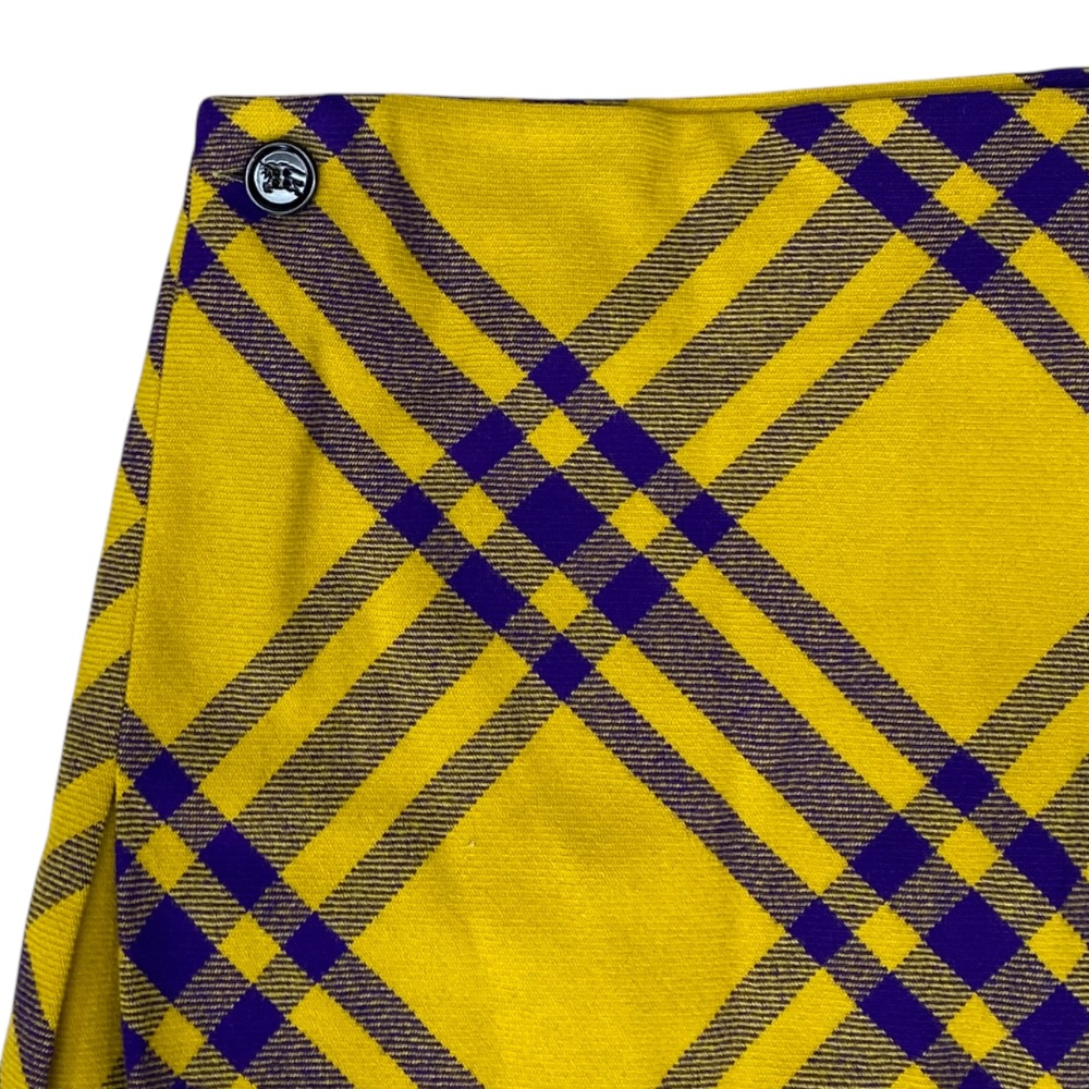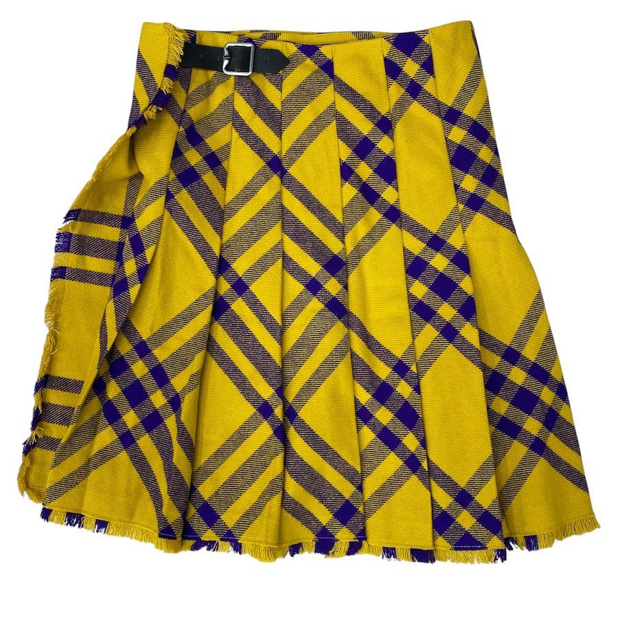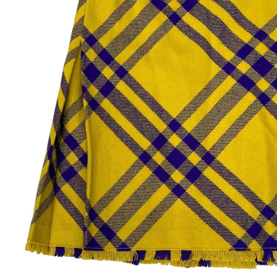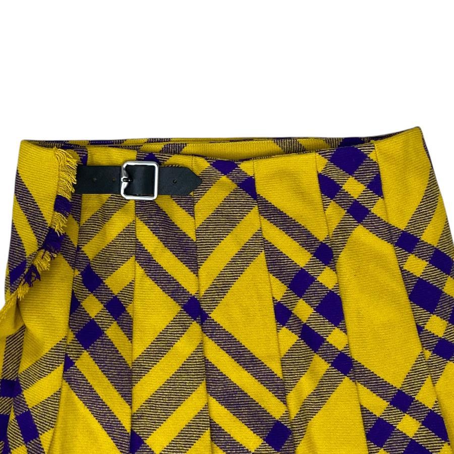 【ブランド】BURBERRY バーバリー【商品名】ラップスカート【商品番号】8077198【カラー】イエロー/パープル【サイズ】総丈:約54cm ウエスト:約36cm(調節穴5か所) ※平置き採寸[表記サイズ:IT36]【素材】ウール【付属品】替えボタン【ランク】S(未使用)【コメント】特筆すべきダメージなし *未使用品【管理番号】0304d1437a商品情報