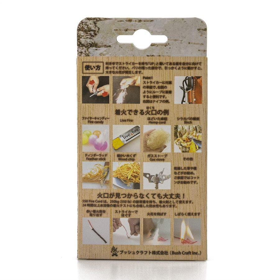 ナイフと併用する本格サバイバリストや、ベテラン ブッシュクラフターの要求に、200%の付加価値で応えるファイヤースチール (メタルマッチ) 。 ストライカーの「レザー・リング」で、ブラつかずコンパクトに収納できる。 550 Fire Cordを採用。(こちらの商品ですがコード部分に使用しております、ファイヤーコードのカラーはランダムのカラーになります。カラーはお選びいただけません) 大きなロッドサ ...