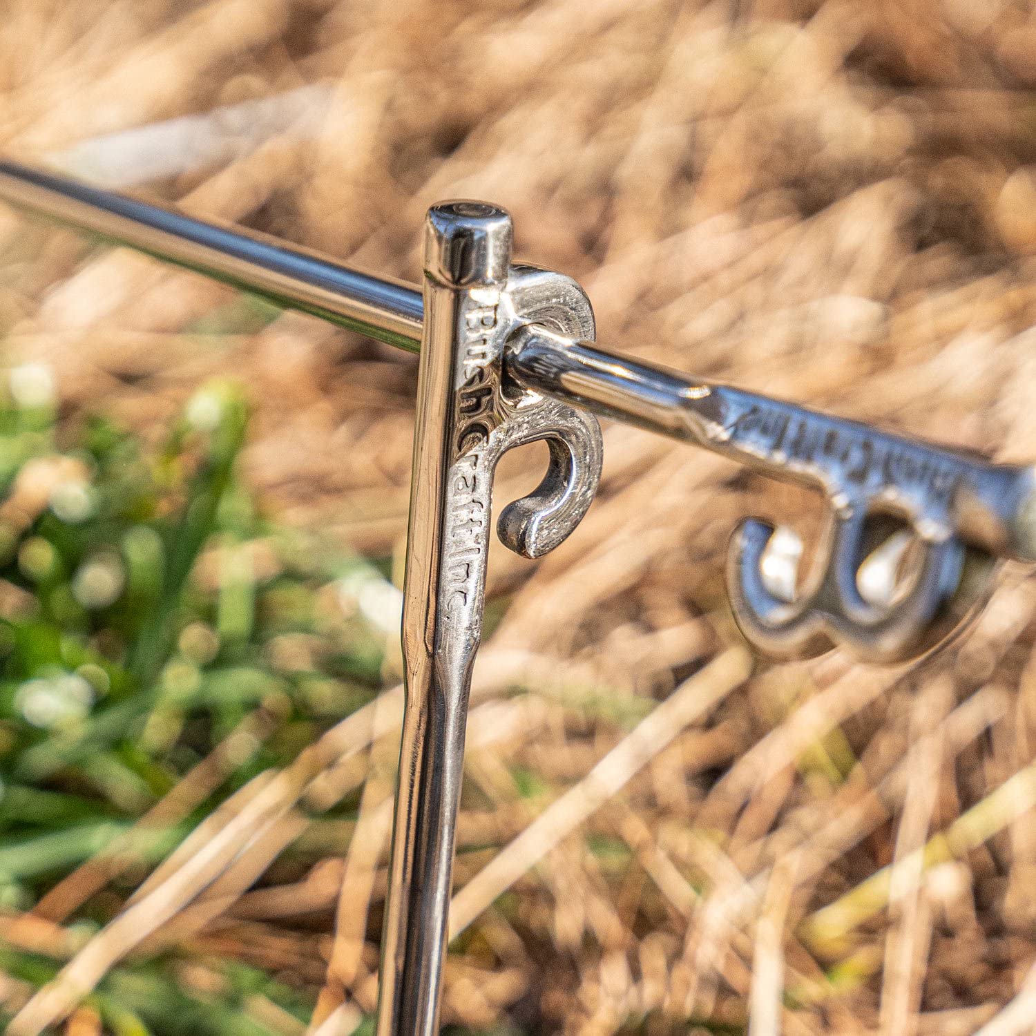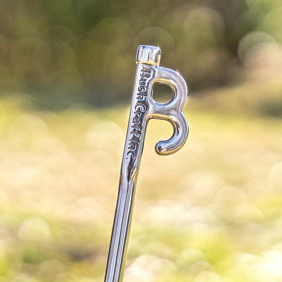 “Bush Craft”のBをモチーフにした頑丈なオリジナルペグです。錆に強く、雨の日や雪中キャンプにもオススメです。