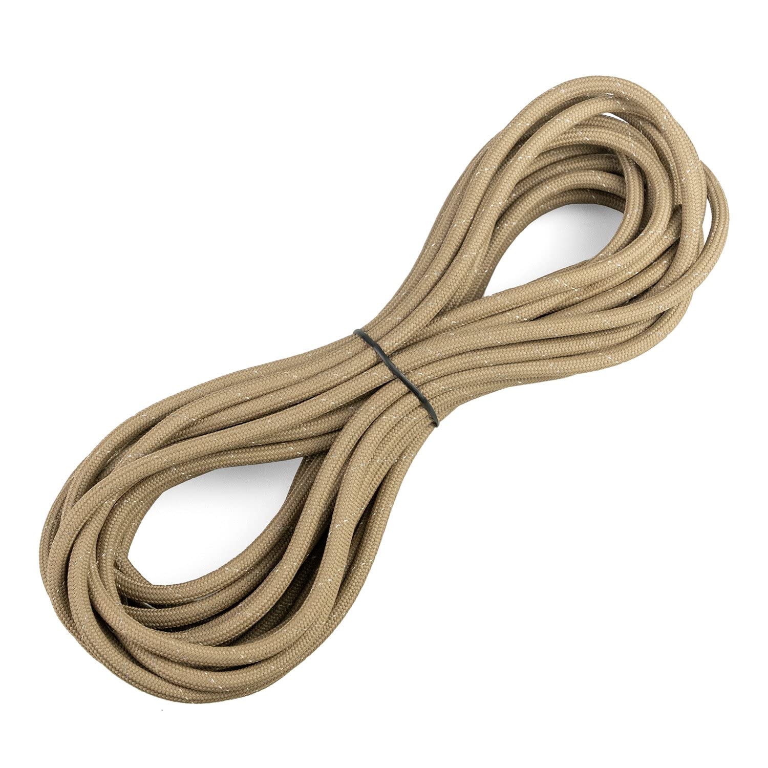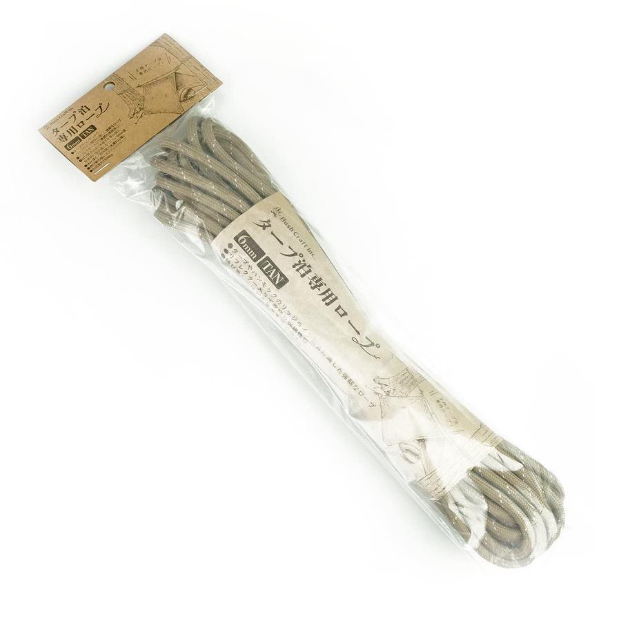 タープやハンモックのリッジライン設営に適した強靭なロープです。リフレクター入りなので、夜間でも安心して使用できます。6mm径のロープは結び易さとほどき易さを兼ね備え、なおかつ結束時の手指へのダメージも比較的少ないバランスの取れたサイズです。また、水に浮かび、紫外線や水濡れにも負けません。伸び率の低いスタティックロープで、耐荷重は約1000kgとなっています。製品取扱上のご注意】・火や熱源の近くで使用しないで下さい。・使用中(加重の掛かった状態)に鋭利な刃物や先の尖ったもの等が触れないようにしてください。・人命救助、登坂を含め身体の結束には使用しないでください。・切断面はロープヒーターで温めて溶着してください。・結束方法の不良による滑落等、使用時の安全確保はご自身で十分に確認をしてください。本製品の誤った使用による破損や事故、けがに関して当社は一切の責任を負いかねます。・使用後は水分や汚れを落としてください。・高温多湿、直射日光を避け、お子様の手の届かない所に保管してください。