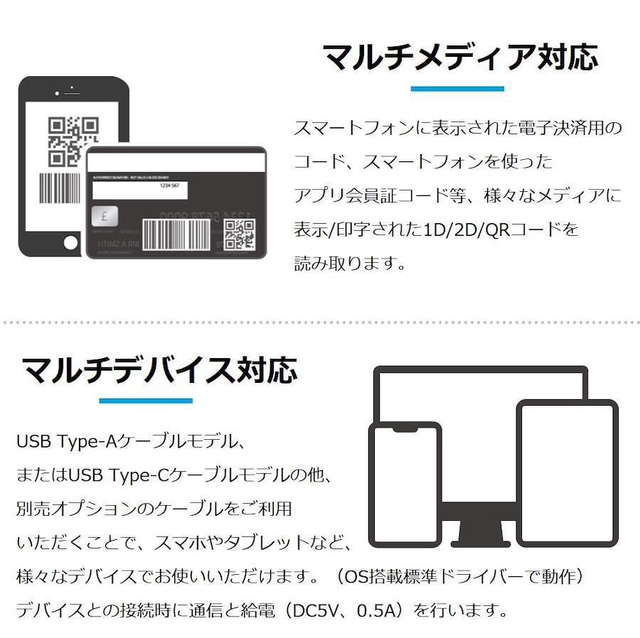 ■型番:BC-NL3000U2-W-C (ホワイト)■インターフェース:USB Type-C■ケーブル:USB Type-C ストレートケーブル(2.0m)■プロセッサ:IOTRC 0370チップ■イメージセンサ:640×480 CMOSセンサ■読み取りコード:《1D》JAN, EAN, UPC-A/E , ISSN, ISBN, NW-7(Codabar), Interleaved 2 of 5(ITF), ITF-6, ITF-14, Industrial 2 of 5, Code 39 , Code 128 , Code 11 , Matrix 2 of 5<GS1 Databar>RSS-Expand, RSS-Limited, RSS-14《2D》QR Code, PDF417, Data Matrix, GS1 DataBar(RSS/RSS 合成シンボル)■スキャンモード:センサーモード、連続モード■解像度:10mil■光源:白色LED■通知:ブザー(3音調、音程調節可能)、LED(緑)■電源:DC5V、0.5A■消