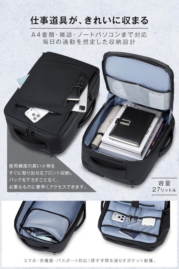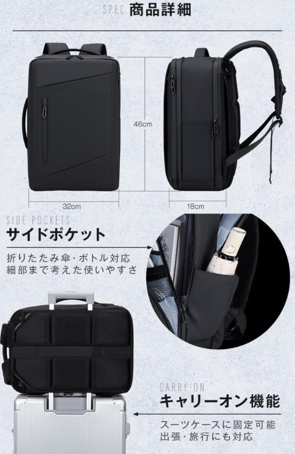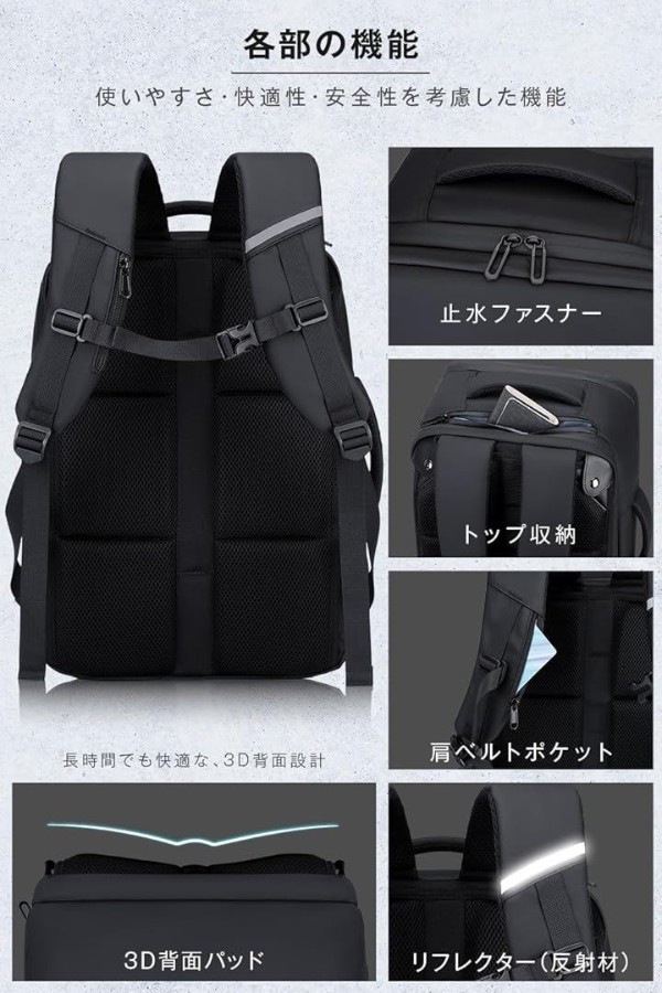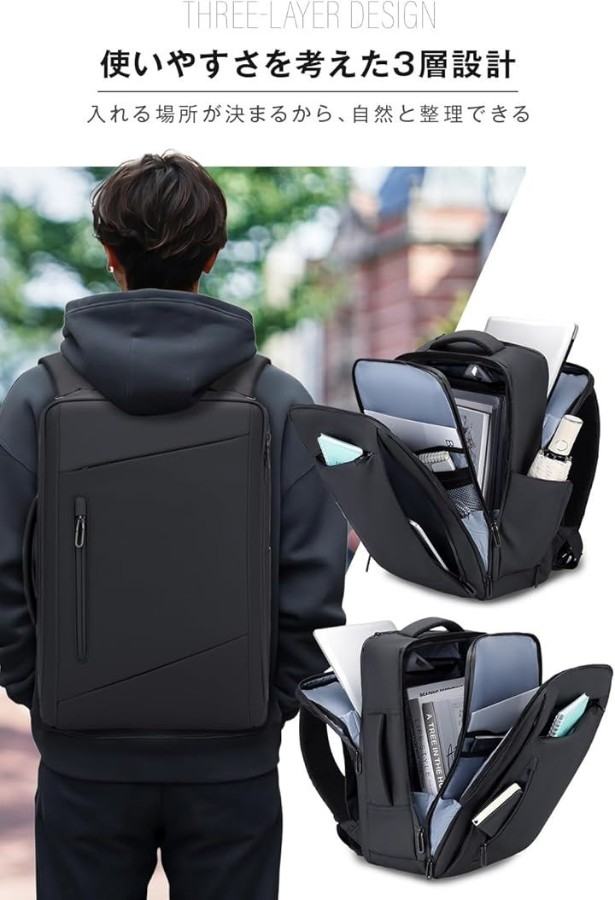 ビジネスとカジュアル兼用、仕事、ビジネス、通学、旅行、週末、ショッピング、登山などのアウトドア活動にも使える大容量バックパックです。