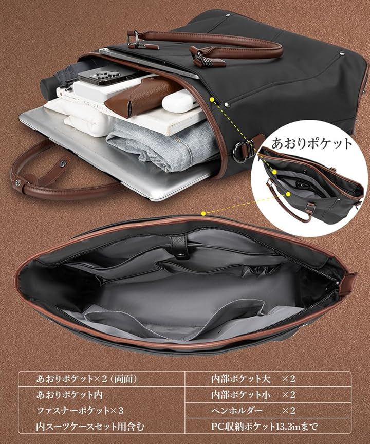 「特徴1」トートバッグに珍しいスーツケースセット可能な仕様。