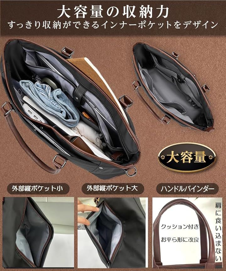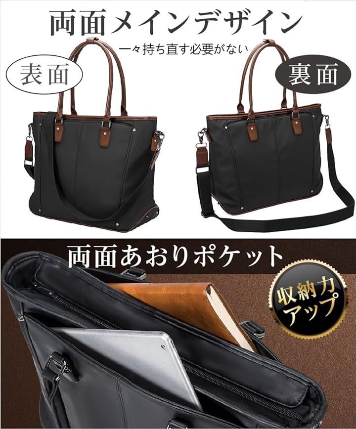 通常バッグは裏目に収納層がないことに比べ、両面あおりポケットが設けているので収納性、利便性がアップ、大超量かつ軽量のため様々な場面で使えます。