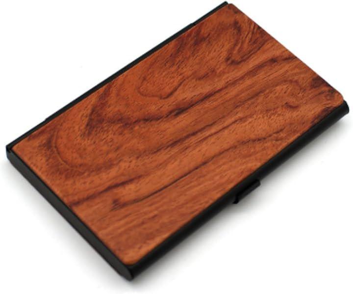 「木製名刺入れ」ステンレススチールのフレームに天然木を組み合わせたシンプルかつ高級感のあるデザイン。