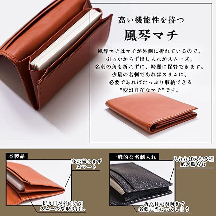 「日本が誇る独自の技術、風琴マチで名刺をサッと取り出しやすい」日本独自の技術、風琴マチ仕様の名刺入れです。