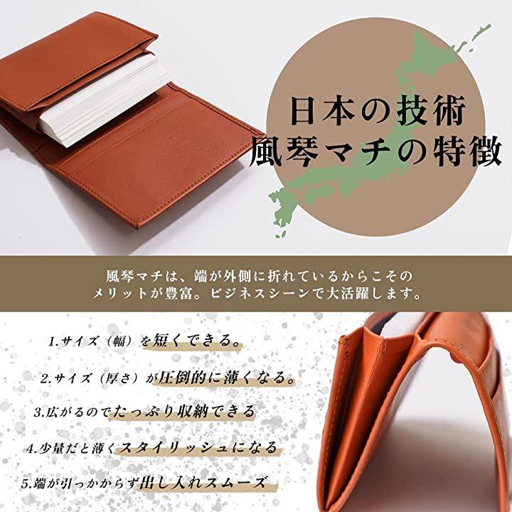 「日本が誇る独自の技術、風琴マチで名刺をサッと取り出しやすい」日本独自の技術、風琴マチ仕様の名刺入れです。