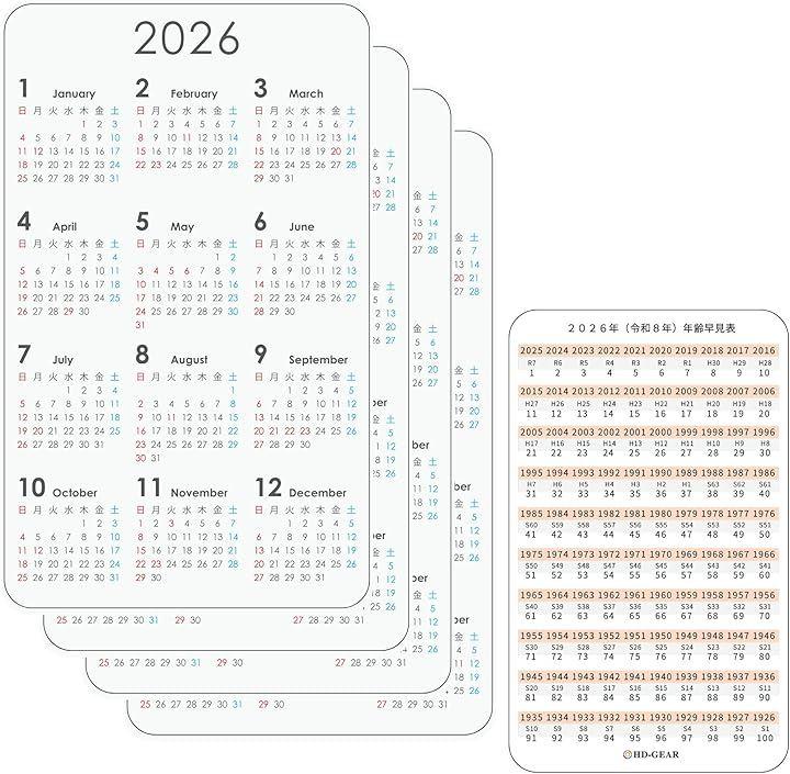 「カード型カレンダー2026(令和8年)」スマホや携帯やPCで調べなくても、日付や年齢や西暦和暦が知りたい時にすぐ分かる。さっと取り出してパッと確認。家庭の卓上や会社・オフィスの机の上に。