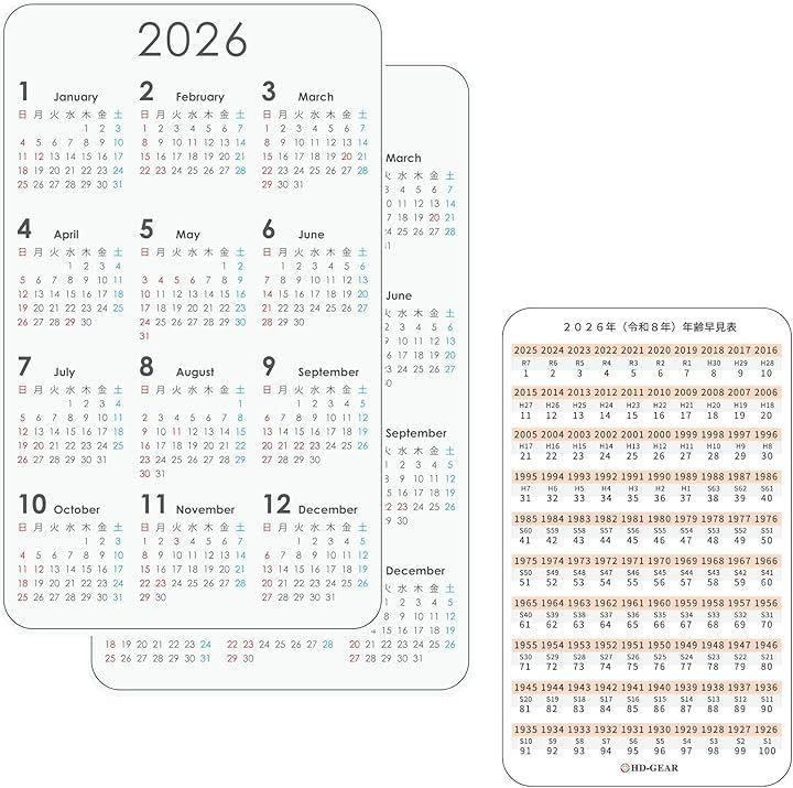 「カード型カレンダー2026(令和8年)」スマホや携帯やPCで調べなくても、日付や年齢や西暦和暦が知りたい時にすぐ分かる。さっと取り出してパッと確認。家庭の卓上や会社・オフィスの机の上に。
