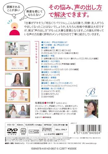 ・誤解されることが多い ・熱意を感じてもらえない その悩み、声の出し方で解決できます。 「仕事がデキそう」「明るくてパワフル」。 こんな印象で、同僚・友人が うらやましくなったことはないでしょうか。 もちろん性格や笑顔は大切ですが 実は“声の出し方”がもっと大事な要素です。 このDVDでは誰でも持っている その“声の力”を磨く評判のメソッドを 丁寧に分かりやすく指導していきます。 (収録内容) ■はじめに…声を出す技術とは? 【感じたことは ないですか?】 【印象・伝わり方が変わる】 ■7つの要素…良い声を出すには? 【要素①…姿勢】 ・ポイントは“正しい型と脱力” ・型を整えて“緊張をゆるめる” 【要素②…呼吸】 ・息は“ガソリンと同じ” ・呼吸が浅い人の特徴 【要素③…のどの筋力】 ・声帯を“しっかり合わせる” 【要素④…舌の筋力】 ・低下は滑舌の悪さ・モゴモゴの原因 【要素⑤…口の開け方】 ・“パクパク開ける”はNGの場合アリ 【要素⑥…表情筋】 ・動かさなくても話せる日本語の問題 【要素⑦…腹筋】 ・お腹に“力を入れる”はNG ■指導①…姿勢 【1.姿勢全体】 【2.肩】 【3.首】 【4.足】 【5.手】 【6.あご】 【7.立っている場合の注意点】 ■指導②…呼吸 【1.姿勢を整える】 【2.丹田・ウエスト・腰のチェック】 【3.耳たぶとの連動】 ■指導③…のどの筋力 【1.のどのストレッチ】 【2.声帯閉鎖の練習】 ■指導④…舌の筋力 【1.舌位のチェック】 【2.ら行・た行・さ行の練習】 ■指導⑤…口の開け方 【割りばしトレーニング】 ■指導⑥…表情筋 【割りばしトレーニング】 ■指導⑦…腹筋(リップトリルを使って) 【1.リップトリルとは】 【2.リップトリルにトライ】 ■実践編…あいさつを使って 【1.おはようございます】 【2.お疲れさまでした】 【3.自分の名前】 指導監修◎中村優子 なかむら ゆうこ ボイストレーナー、声楽家(ソプラノ)。成約率が上がった、相手の反応が変わったといった評価を得ているストアカ・プロ講師。「夢を叶えるための第一歩! 一生使える声づくり」がモットー。美呼吸ラボ・ビーボイス代表 生徒モデル◎野崎麻里