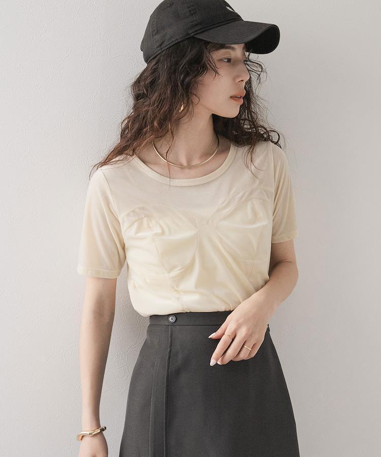 ベロア×ビスチェ風デザインがポイントのシアートップス