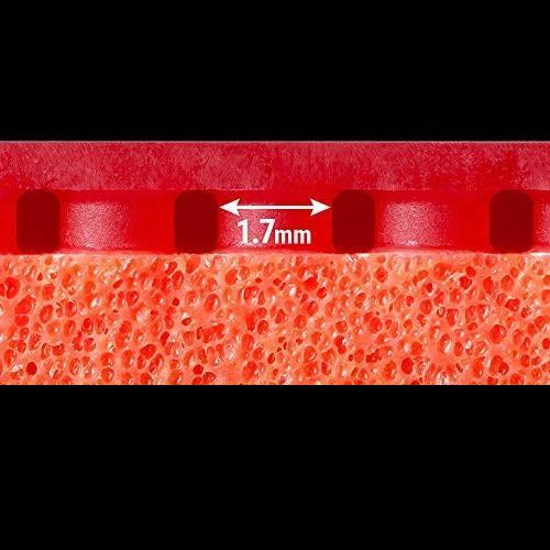 回転をかける性能に優れた「テナジー」。「スプリング・スポンジ」と「エネルギー内蔵技術」が生む独特の打球感を有すラバー。多くの選手による試打と機械測定から「回転性能が高い」と評価された「開発コードNo.05」のツブ形状を採用し、強烈な回転をかけられます。エネルギー内蔵型ラバーと高粘着高摩擦ラバーが融合したかのように、回転主体のプレーに非常に高い性能を発揮します。