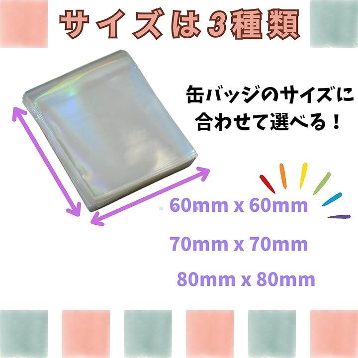 「サイズ」60 x 60, 70 x 70, 80 x 80 (単位ミリ)/「カラー・枚数」透明、レインボー/各100枚入り