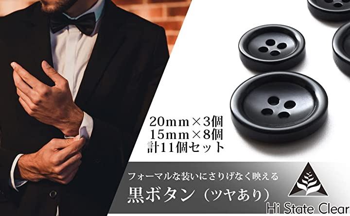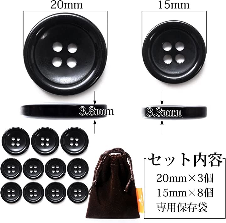 カラー:ブラックボタン(11個セット )セット内容:直径20mmが3個・直径15mmが8個