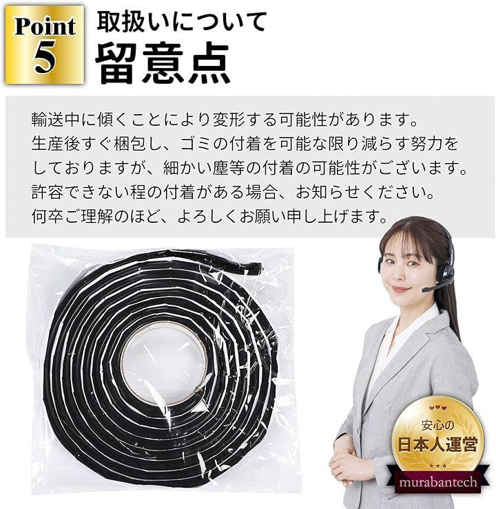 ・「仕様」内容:1本(長さ4m/太さ約8mm)、材質:合成ブチルゴム(耐熱・耐寒:-30~120℃)、*使用前に表面の汚れ、油分を取り除いてください。
