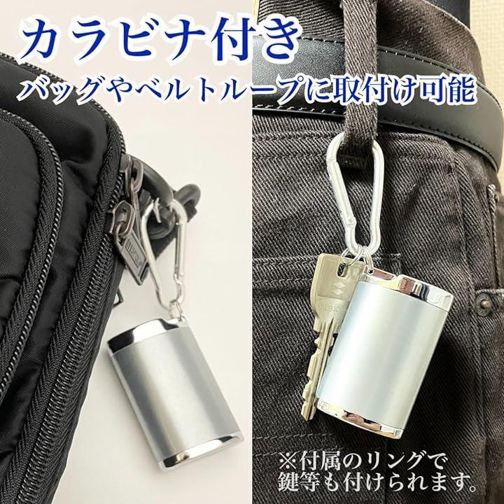 カラビナ付きでバッグやベルトループに取り付け可能。