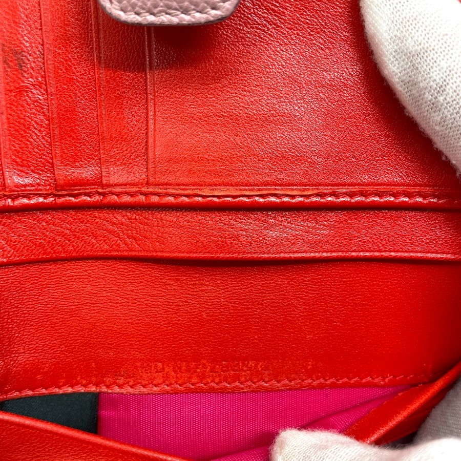 【ブランド】BVLGARI ブルガリ【商品名】ビーゼロワン ミディアムウォレット【商品番号】-【カラー】ピンク【サイズ】横:14.5cm 縦:10cm 奥行:2.5cm【素材】レザー【付属品】-【ランク】AB(一般中古~良品)【コメント】外側:角スレ/キズ(小) 内側:薄スレ/汚れ/小銭入れ使用感(写真参照)【管理番号】0415a0869o商品情報