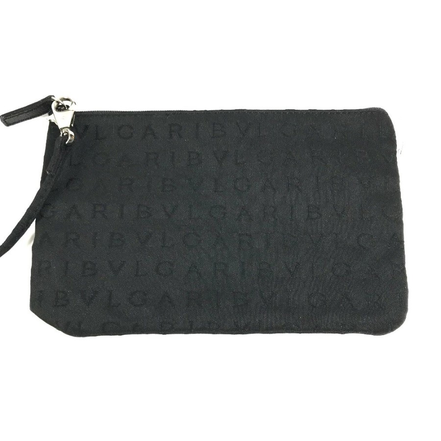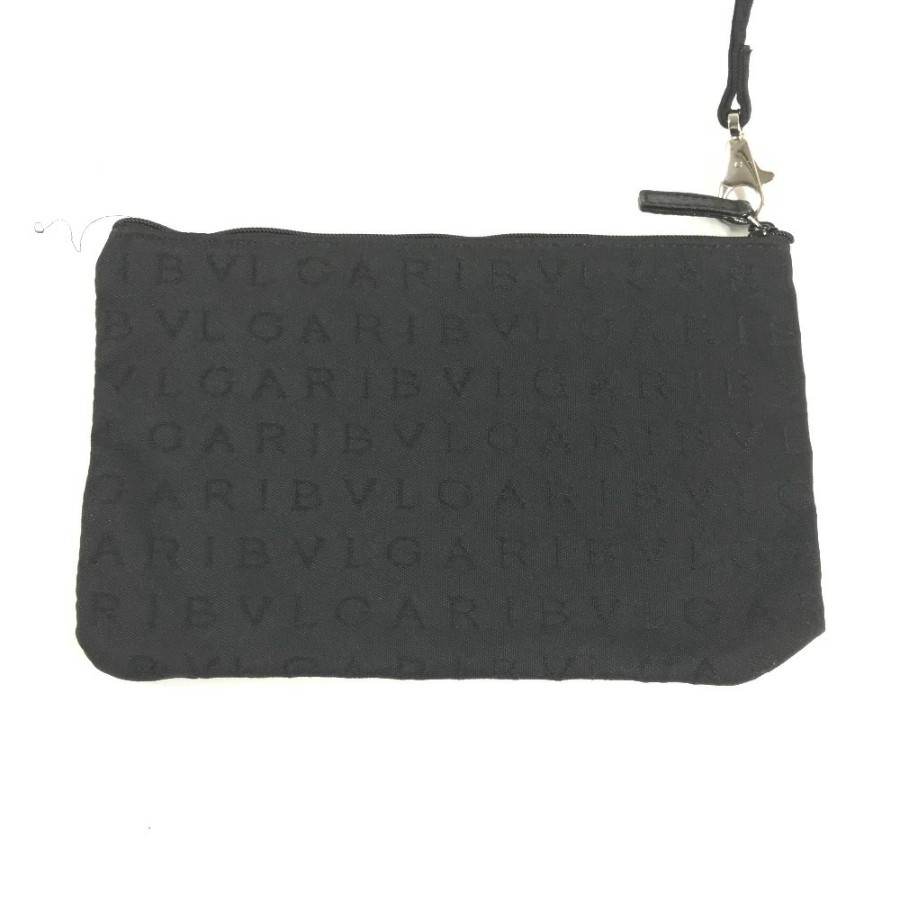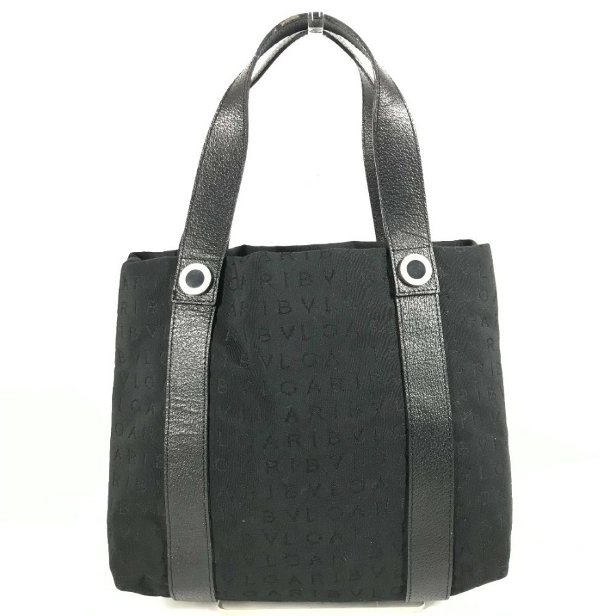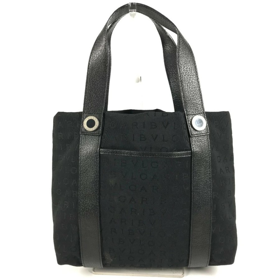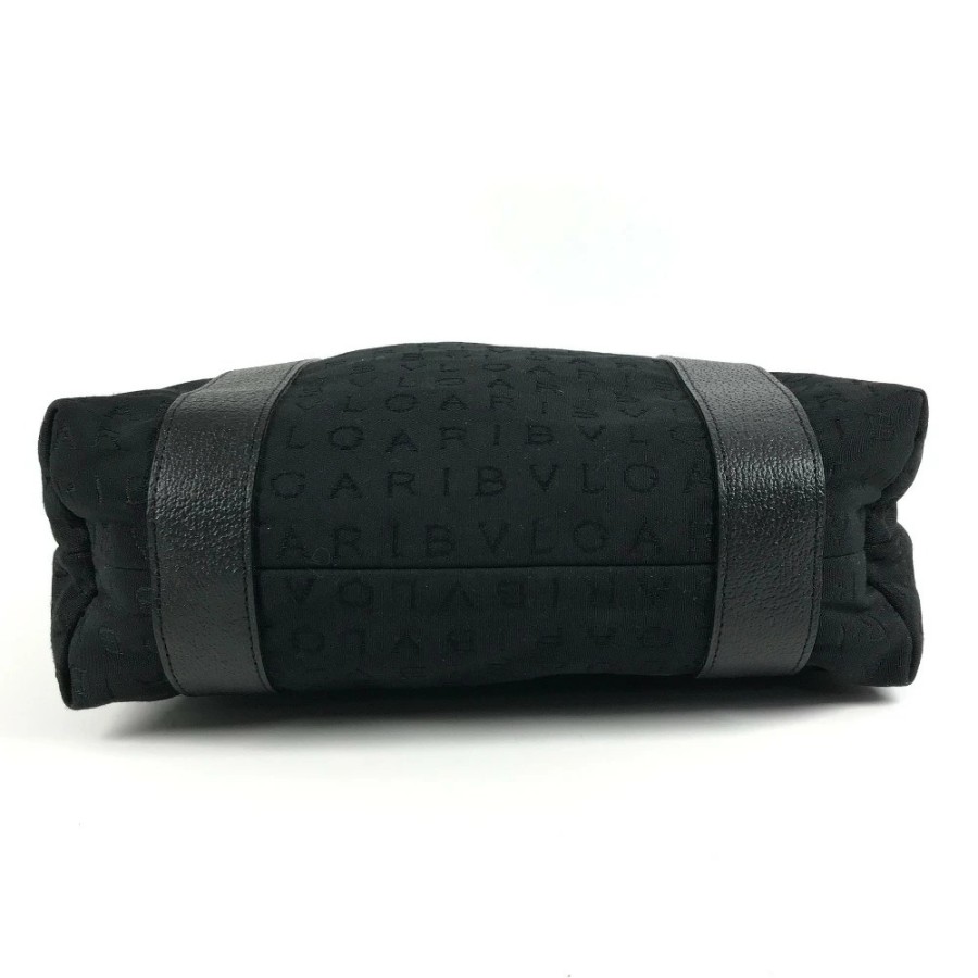 BVLGARI Logo Mania bag with pouch, tote bag, handbag, leather/canvas, unisex, black [Pre-owned]