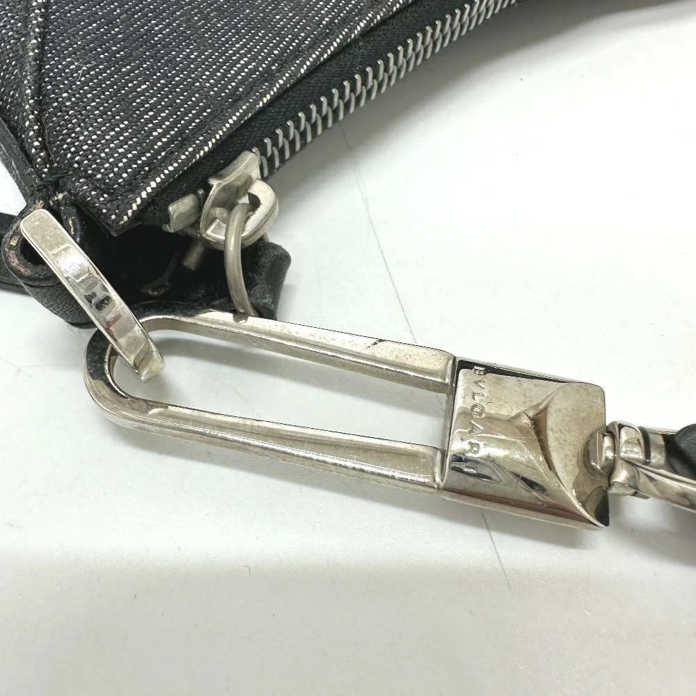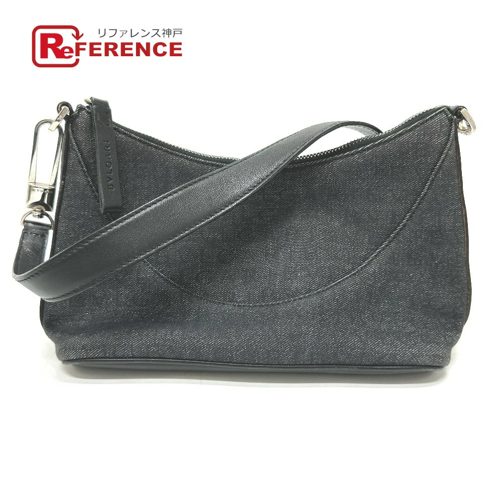 BVLGARI Logomania Handbag, Canvas/Leather, Women's, Navy [Pre-owned]