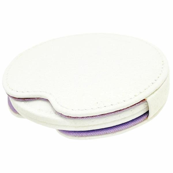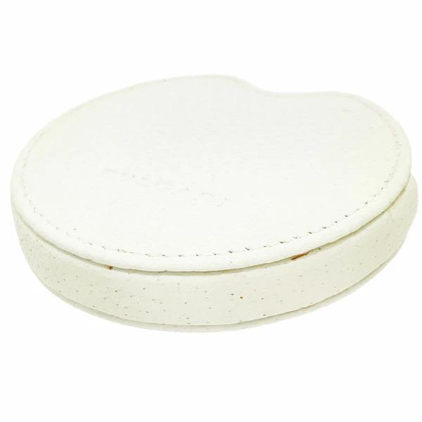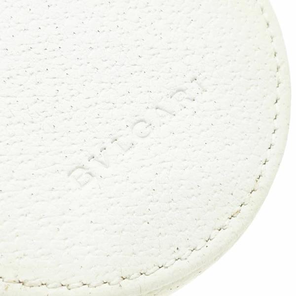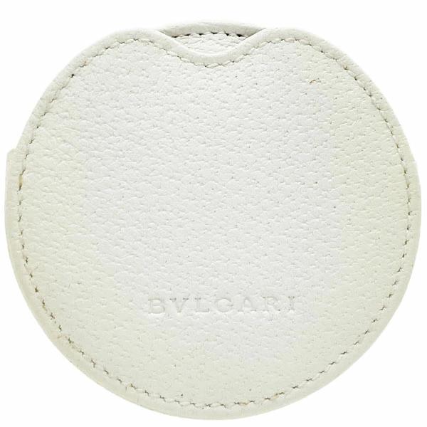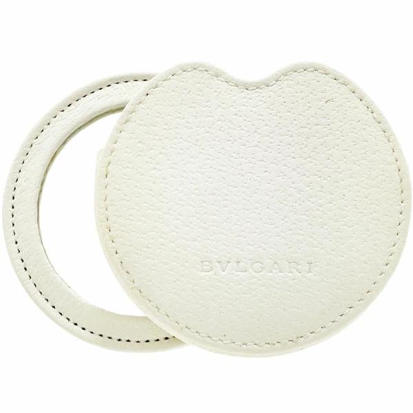 Bvlgari Mirror, Leather, Ivory/White, Round, BVLGARI Logo, Compact Mirror, Double-Sided Mirror, Magnifying Glass, Portable Mirror, Brand Name Accessory, Box Included [Pre-owned]