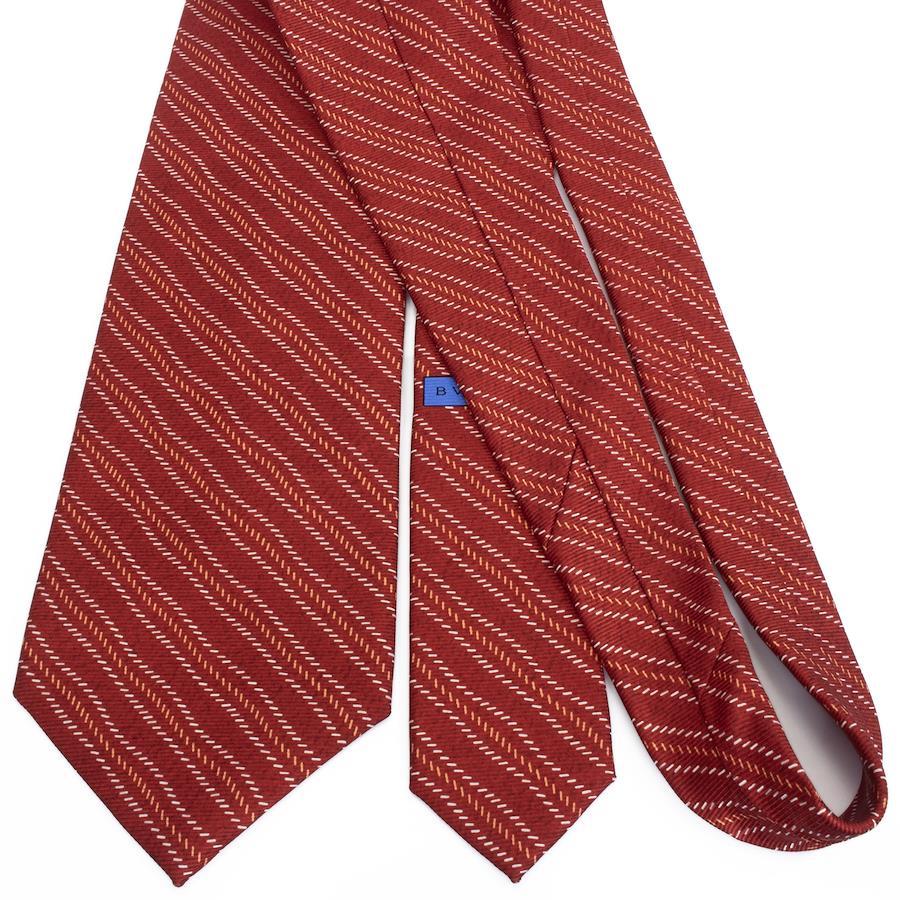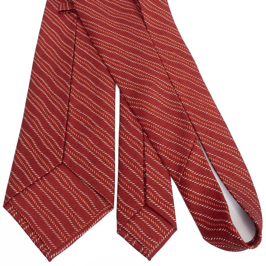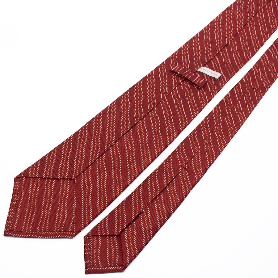 熟練の職人による「セッテピエゲ(七つ折り)」構造により、通常のネクタイとは一線を画す肉厚で優雅なボリューム感を実現しております。
