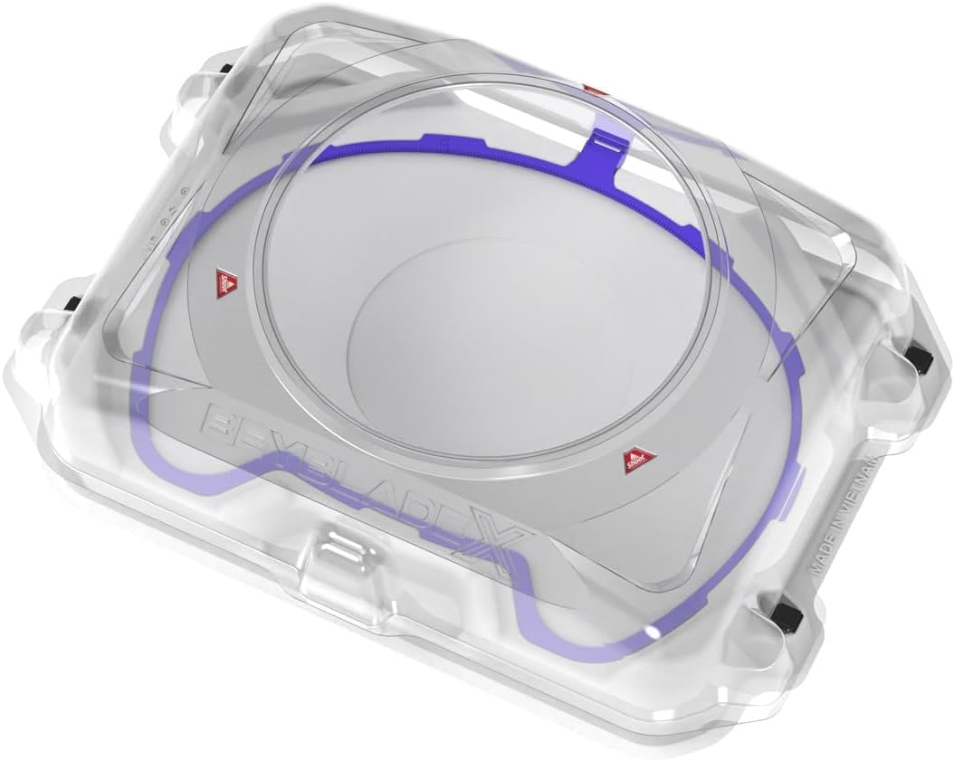 超加速ギミック【Xダッシュ】による驚異的なスピードと衝撃でエクストリームなバトルを繰り広げるギアスポーツである。 3人バトルに対応した専用スタジアム。 ※この製品で遊ぶには別売りの専用のベイ とランチャーが必要です。 【セット内容】カバー(1),本体(1),留め具(4),ベイ コードカード(1),取扱説明書(1),