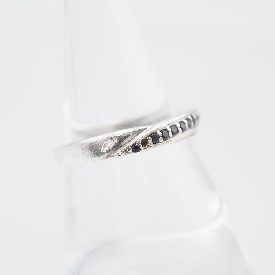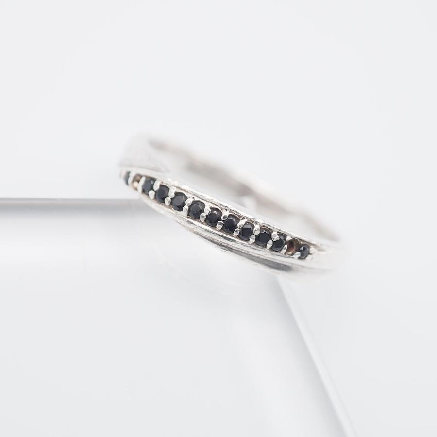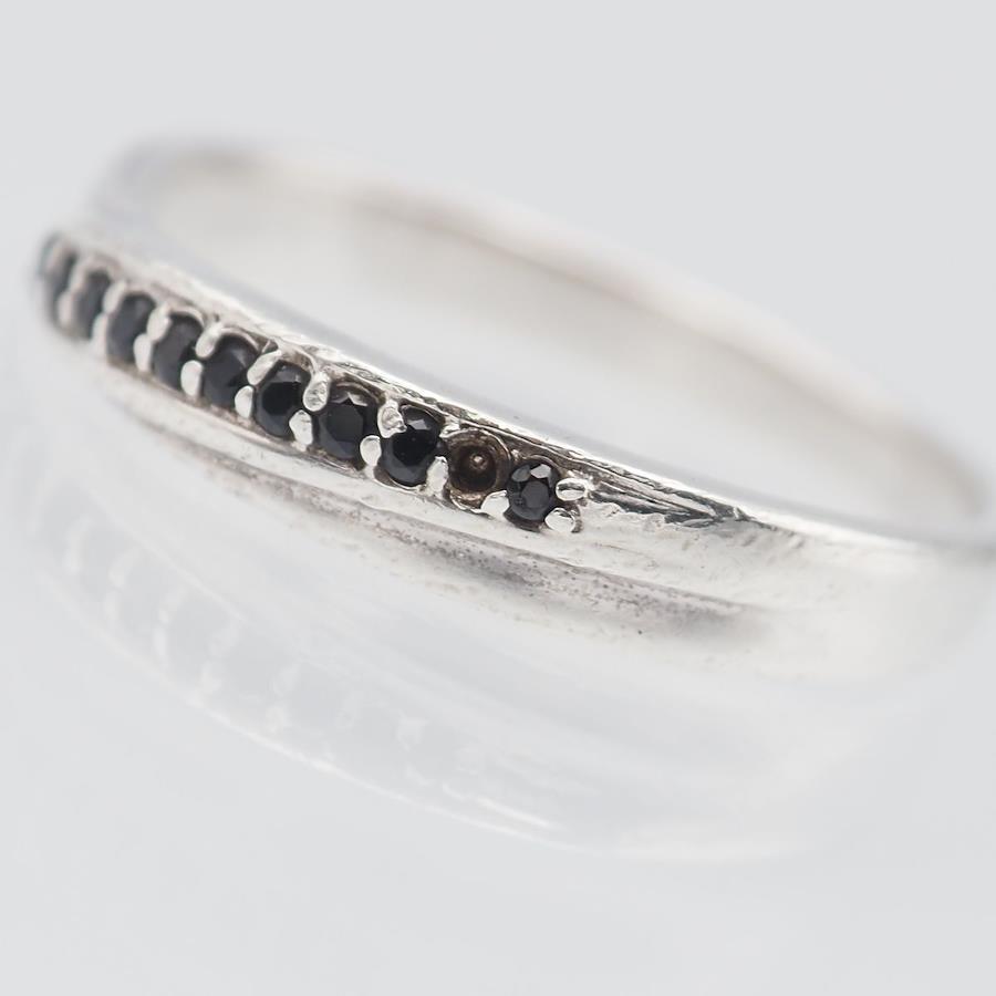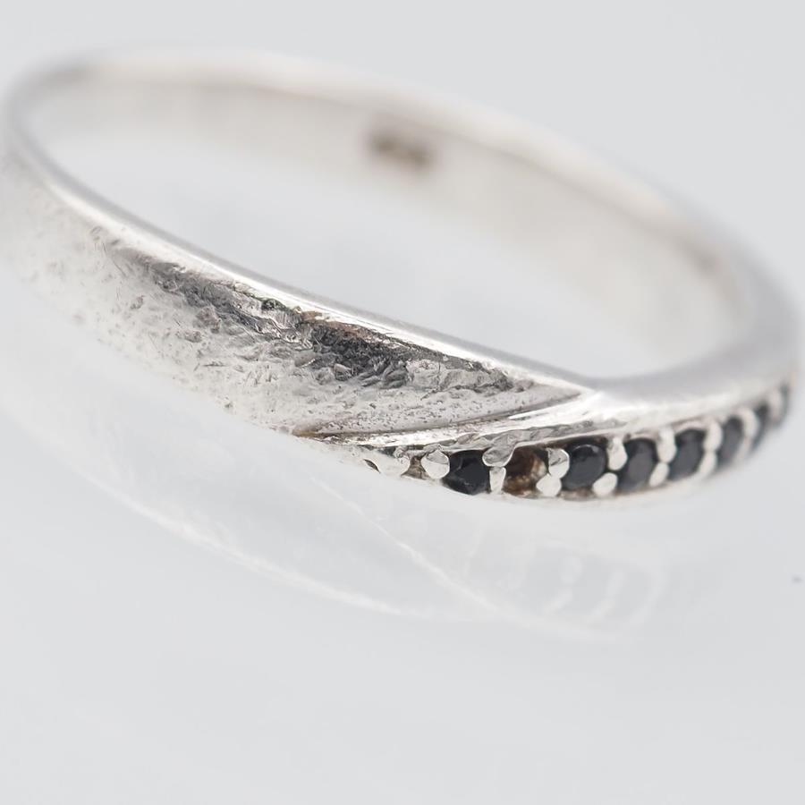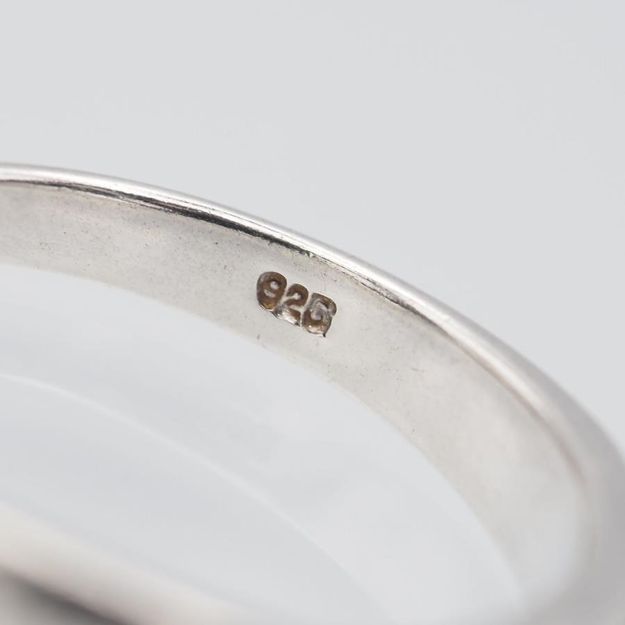 C736 Onyx 925 Stamped Ring with Rhinestone Design, Silver, Size 15