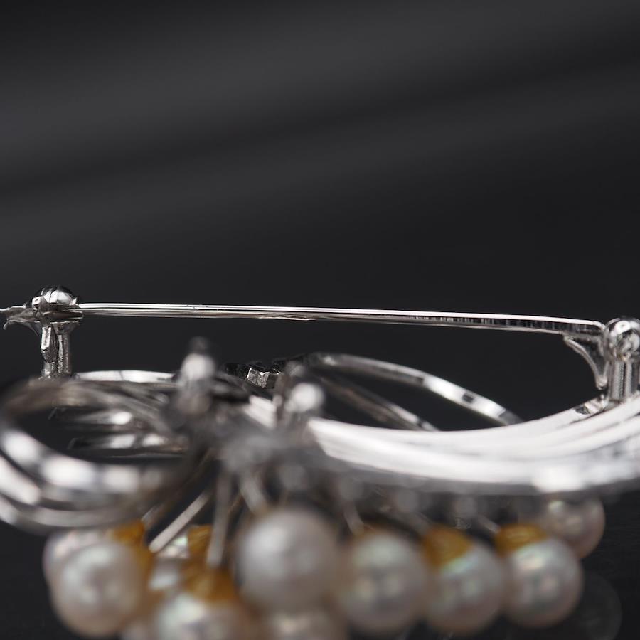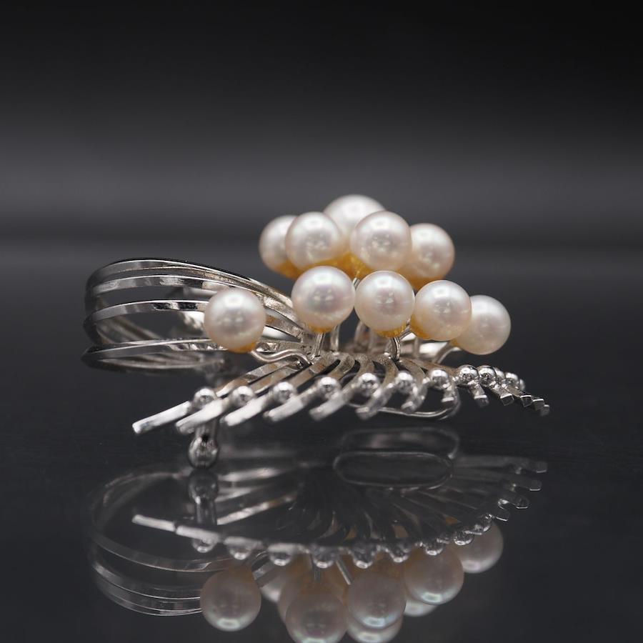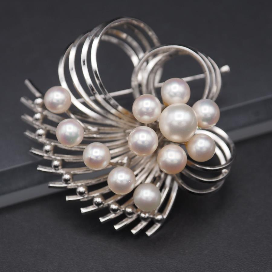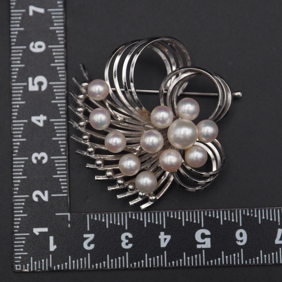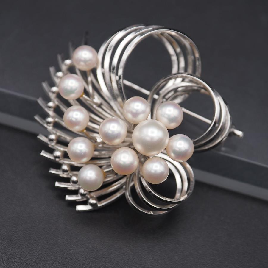 C791 Genuine Pearls, 5.5-7.5mm, 12 Pearls, Silver Stamp, 2-Way Brooch, Obidome, Silver Corsage, Japanese Clothing Accessory, June Birthstone