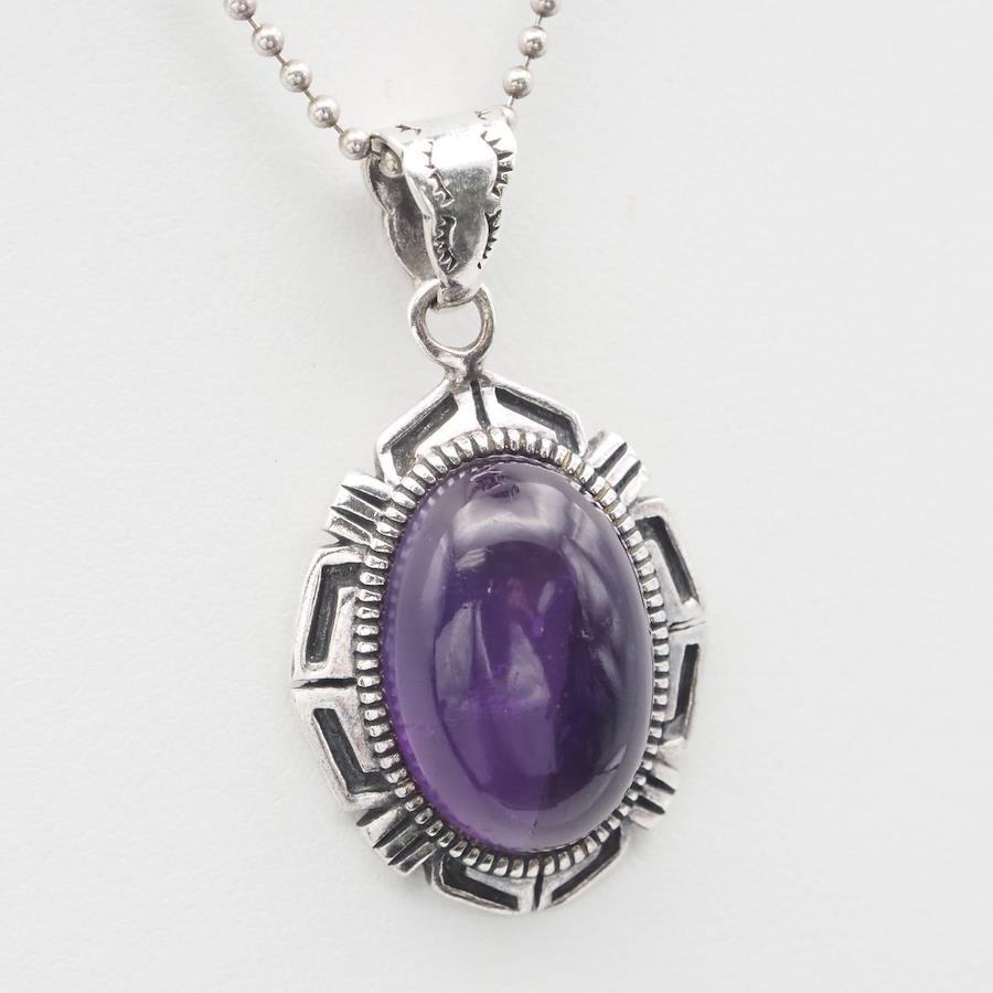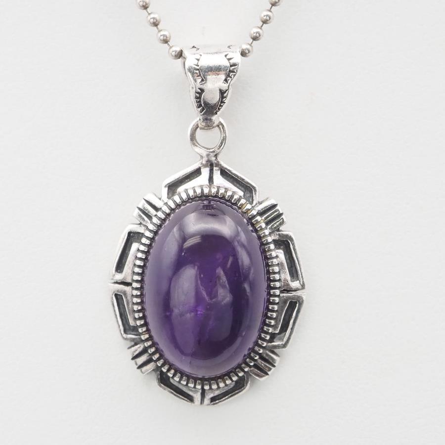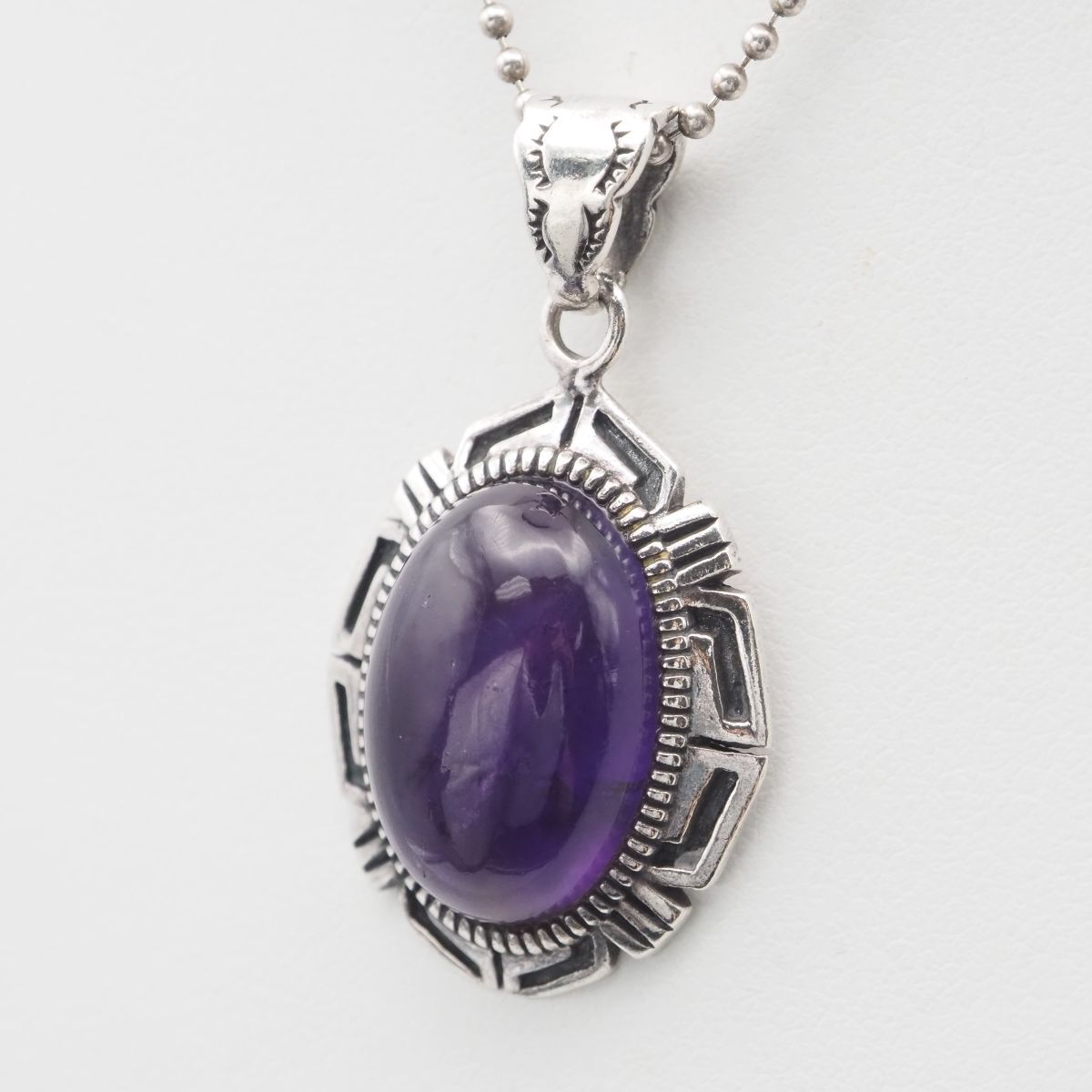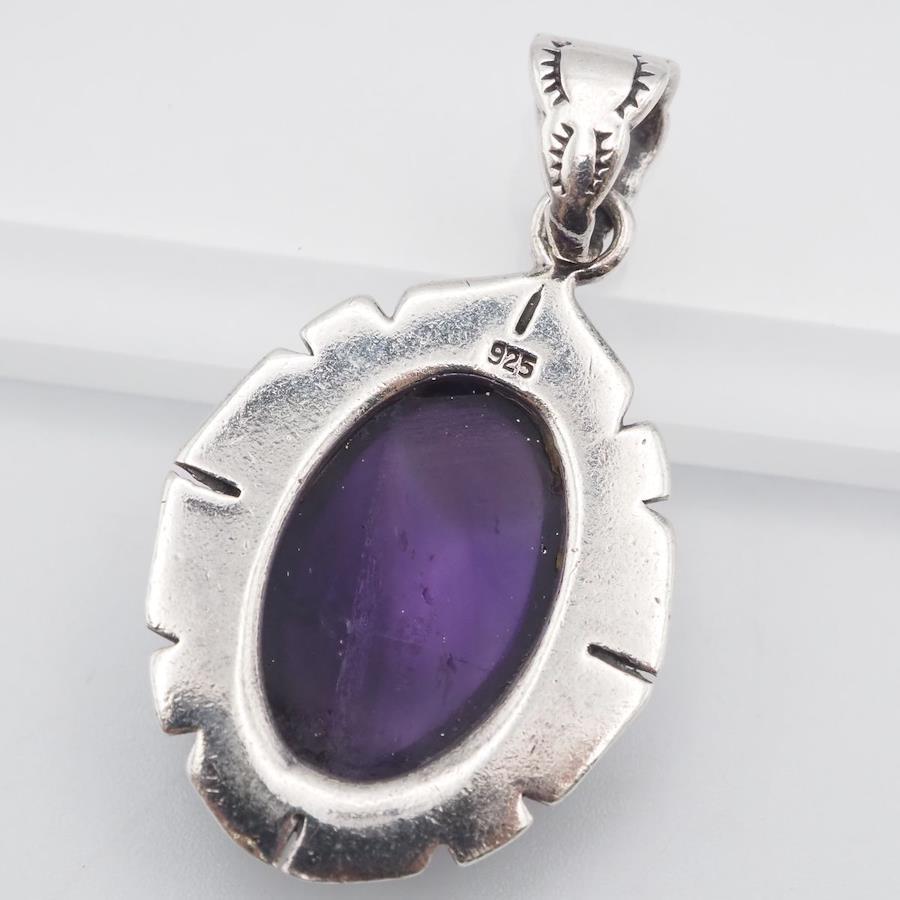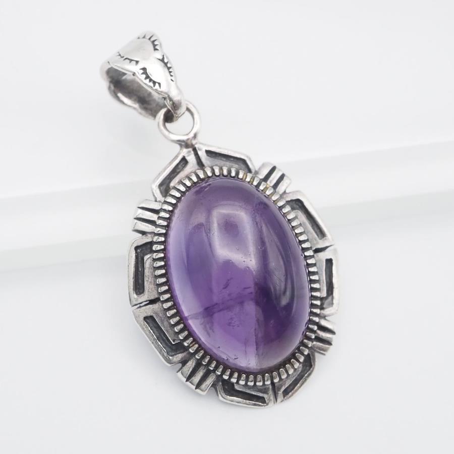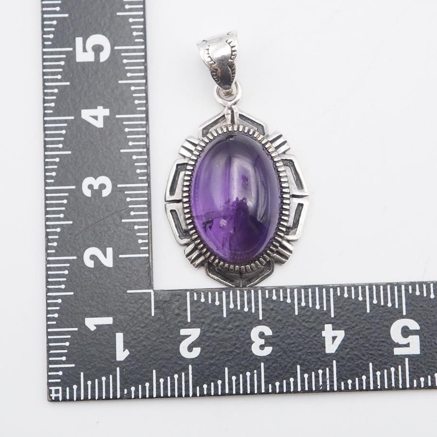 C917 Amethyst 925 Stamped Pendant Top Design Silver Charm Head Vintage February Birthstone