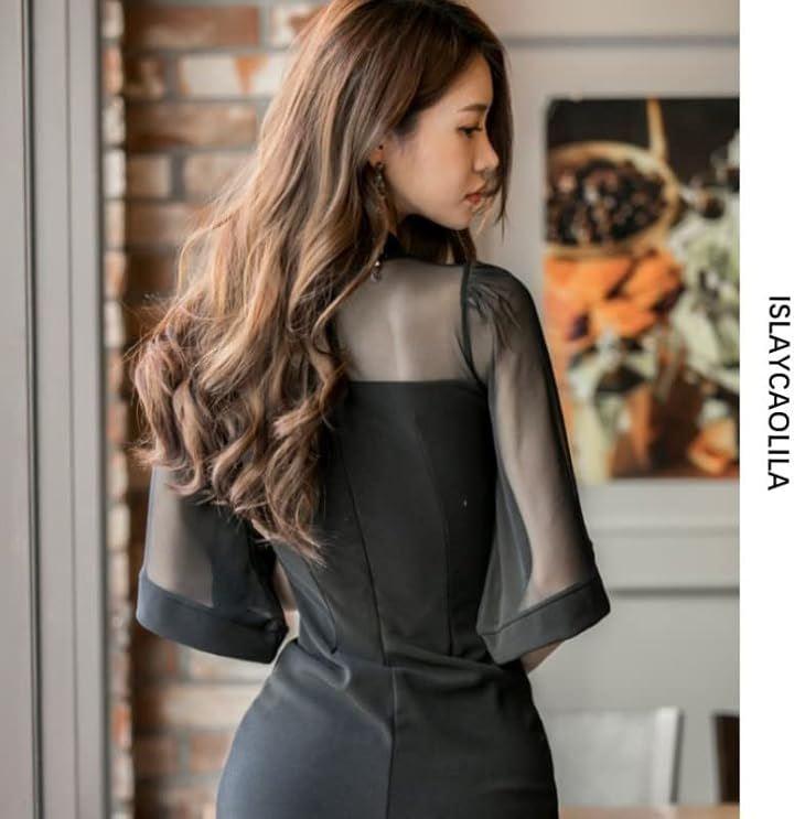 シンプルながらもクールにスタイリッシュで、ベーシックなブラックのタイトミニワンピース、パーティドレスです。