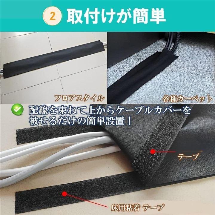 配線を束ねて上からケーブルカバーを被せるだけの簡単設置、自宅、オフィス、イベントなどの配線隠しに大活躍。
