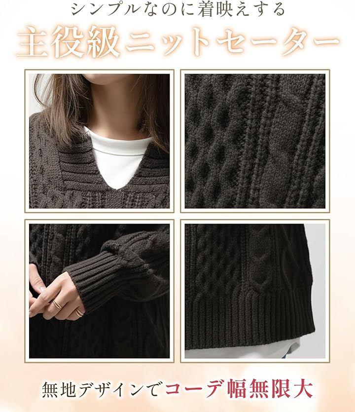 「今っぽシルエットで主役級のニットソー」大きめシルエットがトレンド感たっぷりのケーブル編みVネックニット。立体的な編み模様が存在感を放ち、シンプルなボトムに合わせるだけで一気におしゃれ上級者に。