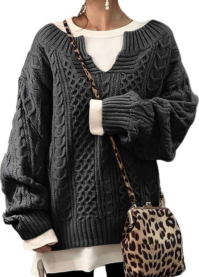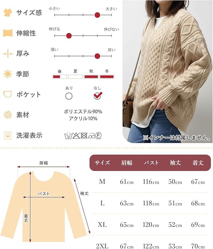 「今っぽシルエットで主役級のニットソー」大きめシルエットがトレンド感たっぷりのケーブル編みVネックニット。立体的な編み模様が存在感を放ち、シンプルなボトムに合わせるだけで一気におしゃれ上級者に。