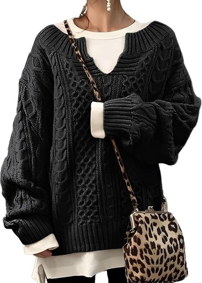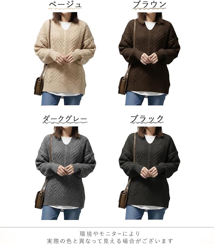 「今っぽシルエットで主役級のニットソー」大きめシルエットがトレンド感たっぷりのケーブル編みVネックニット。立体的な編み模様が存在感を放ち、シンプルなボトムに合わせるだけで一気におしゃれ上級者に。