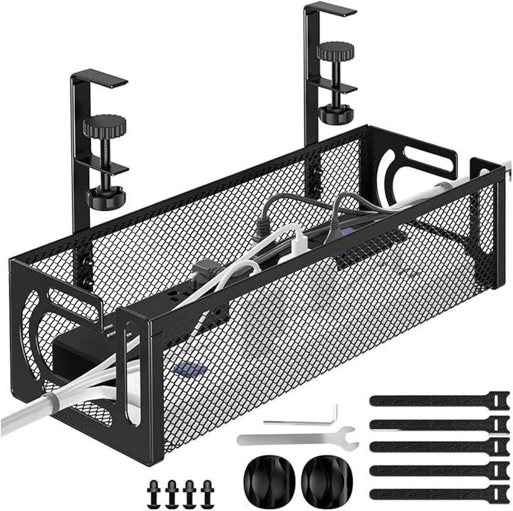Cable Management, Hiding Wires, Tray, Under-Desk Organization, Rack, Outlet, Power Strip Holder, Adjustable, Steel, No Drilling Required, for Office or Home Use