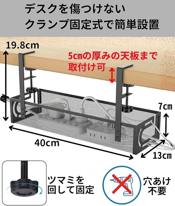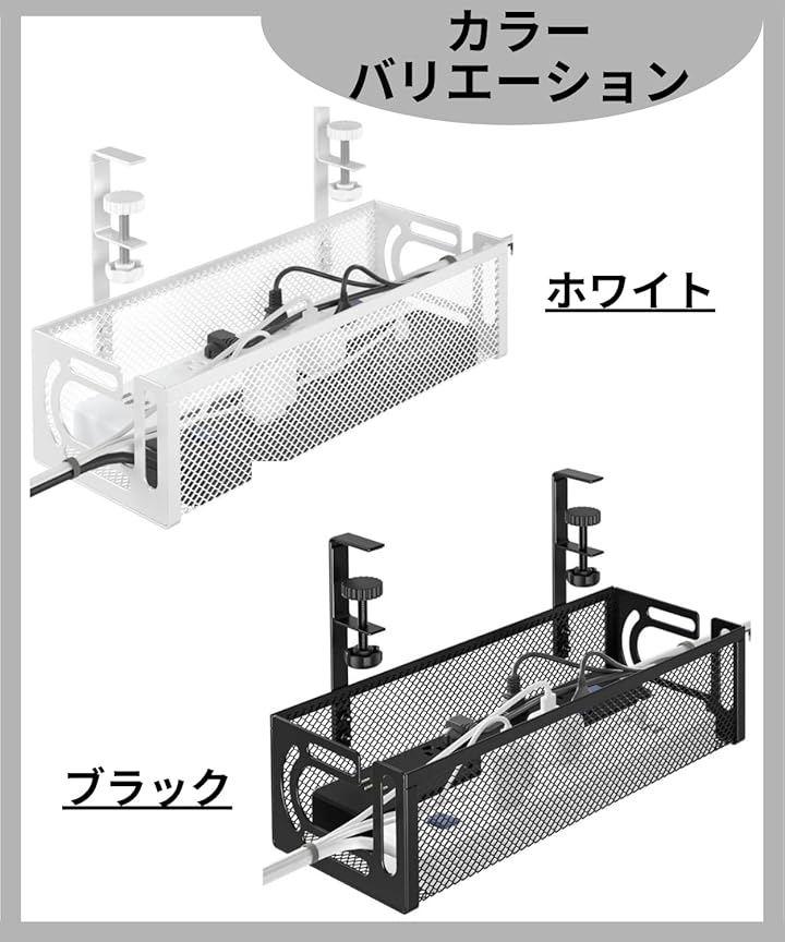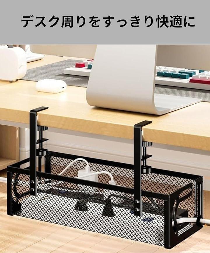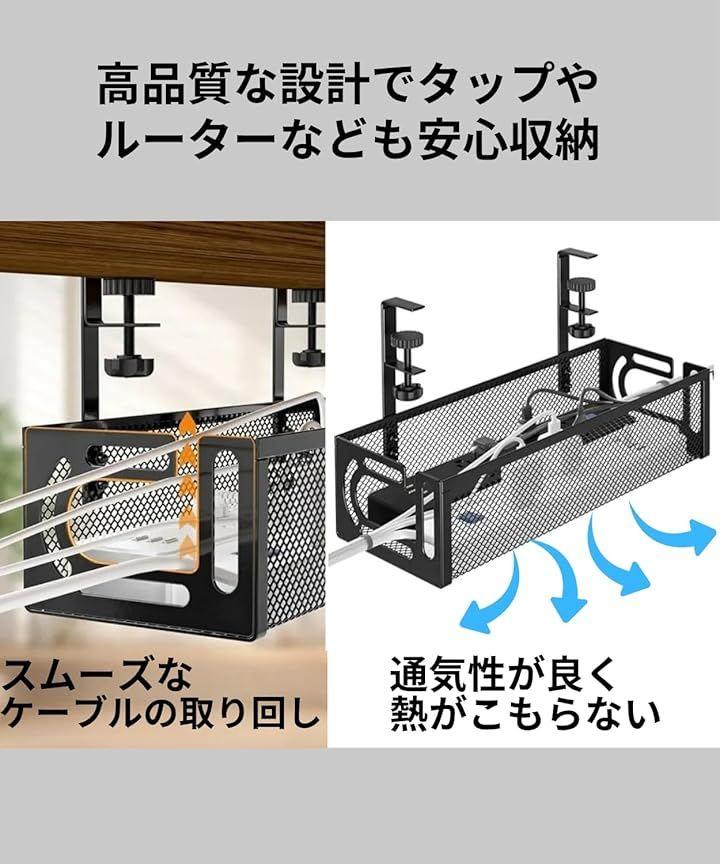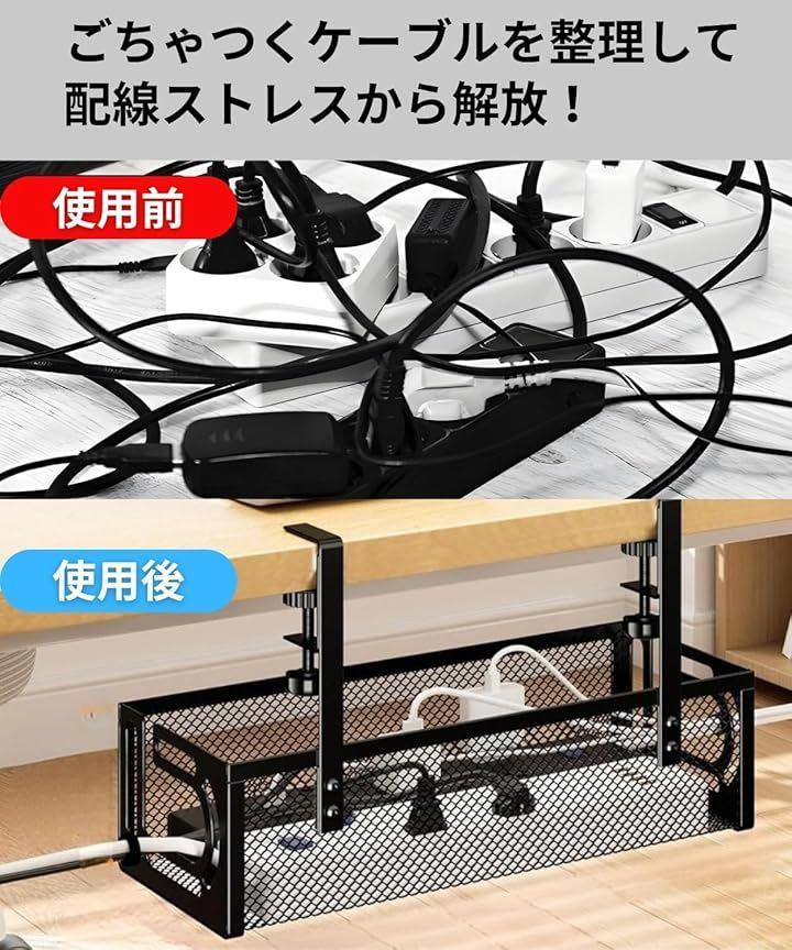 「デスク周りの配線をすっきり整理」 デスク下のごちゃごちゃした配線や電源タップをまとめて収納できるケーブルトレーです。