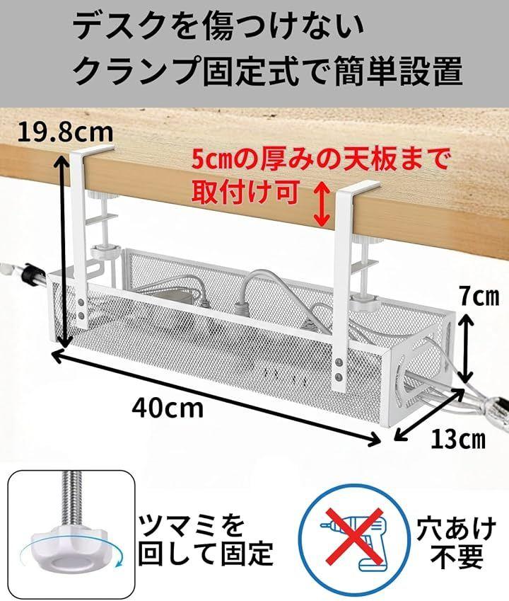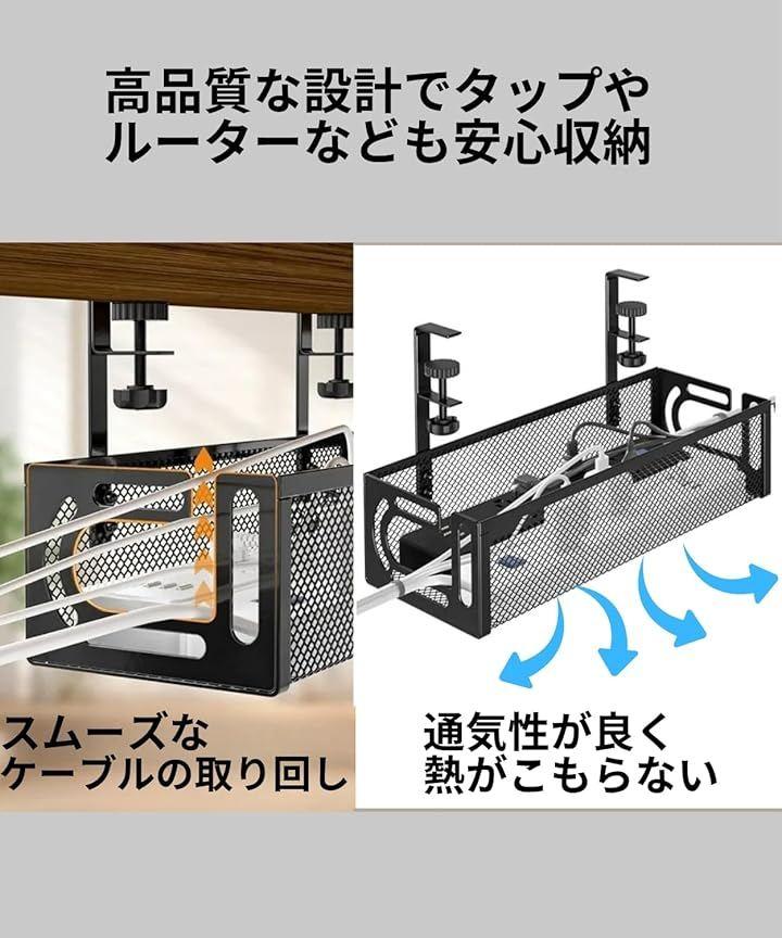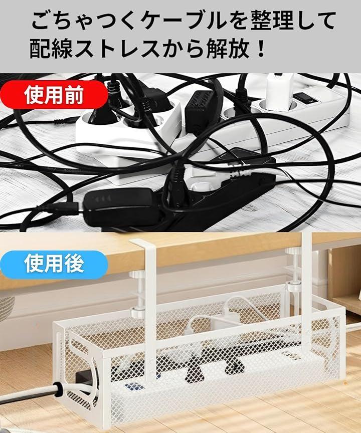 「デスク周りの配線をすっきり整理」 デスク下のごちゃごちゃした配線や電源タップをまとめて収納できるケーブルトレーです。