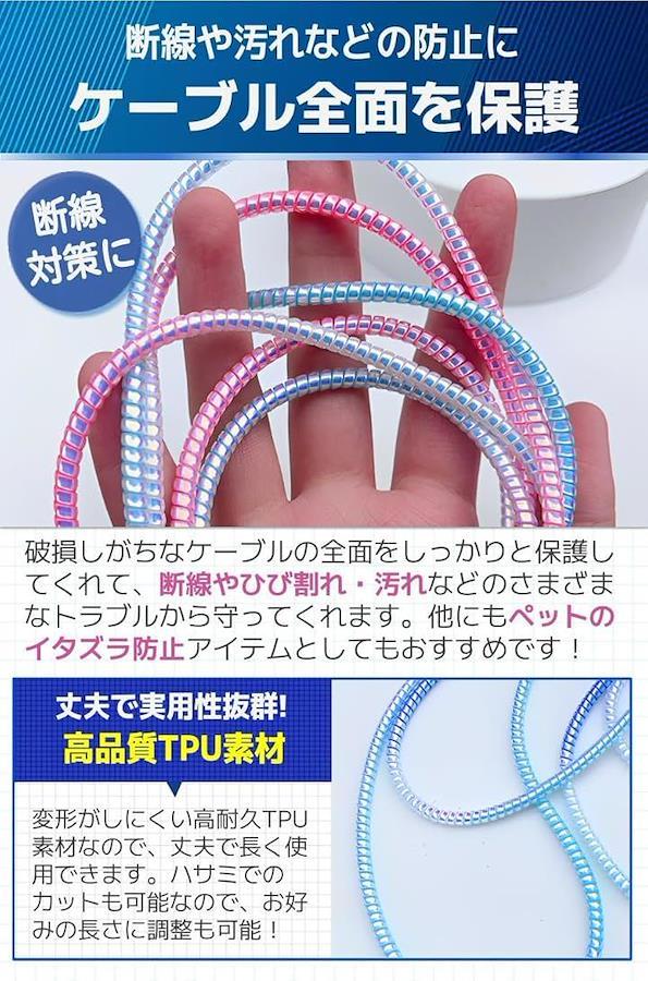 「ケーブル全面を保護」破損しがちなケーブルの全面をしっかりと保護してくれて、断線やひび割れ・汚れなどのさまざまなトラブルから守ってくれます。