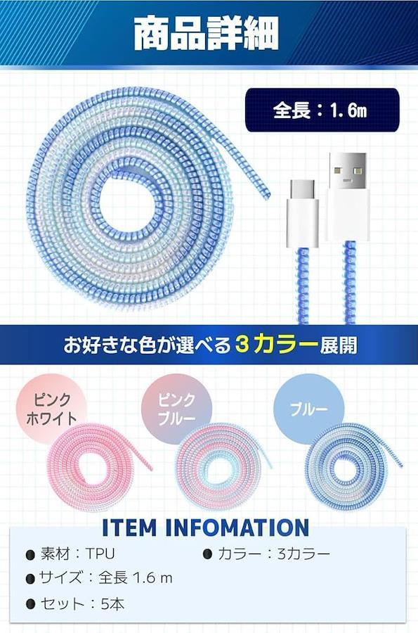 「あらゆるシーンに活躍.」便利でお得な5本セットとなっているので、一度に複数のケーブルに使用していただくことができます。