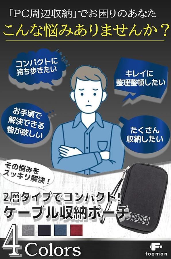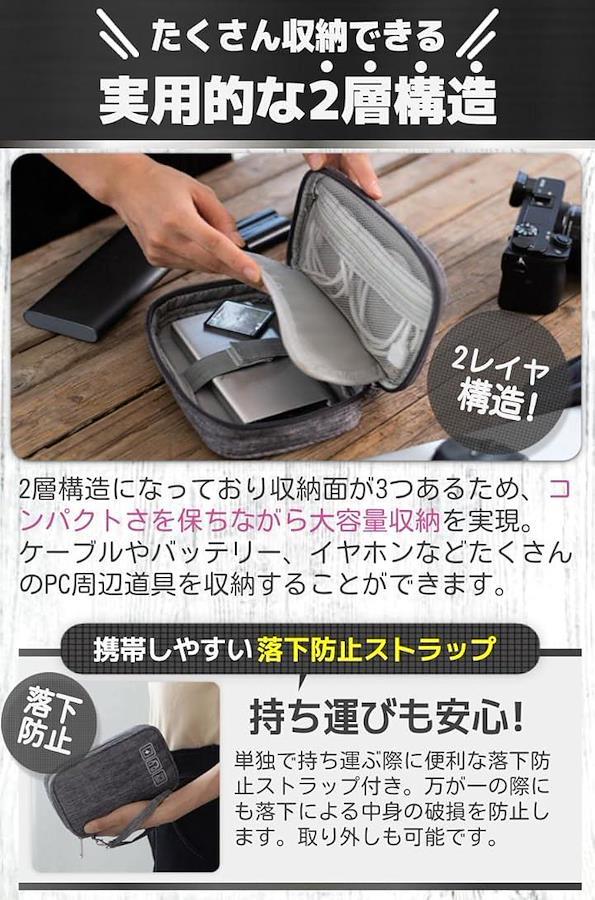 こんな悩みありませんか? コンパクトに持ち歩きたい…キレイに整理整頓したい… お手頃で解決できる物が欲しい…たくさん収納したい… その悩みをスッキリ解決。 2層タイプでコンパクト.ケーブル収納ポーチ。