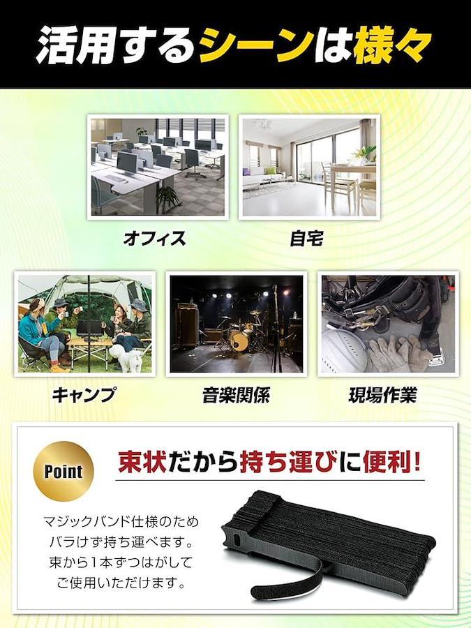 「現場作業でたくさんの配線止めが必要」「音楽関係のケーブル類を整理したい」「イベント設営やキャンプで固定バンドが必要」そうお考えの方にもぜひ。